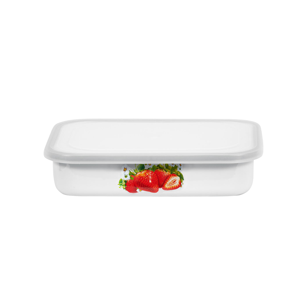 Миска Лысьвенские эмалированная с крышкой "Клубника" эмалированная, 1,5 л