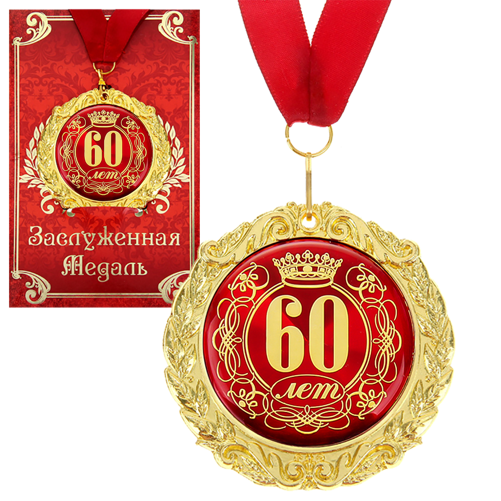 Создана формула идеального поздравления: классическая форма и праздничное содержание. Оригинальная медаль – отличная награда для самых достойных представителей своего времени. Эксклюзивный сувенир станет достойным украшением вечера и поможет создать незабываемое поздравление! Медаль в подарочной открытке "60 лет" изготовлена из золотистого металла, идет в комплекте с лентой, упакована в открытку с торжественным приветствием для адресата.