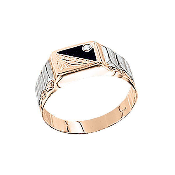 Мужское кольцо из красного/белого золота 585 пробы с фианитом и черной эмалью