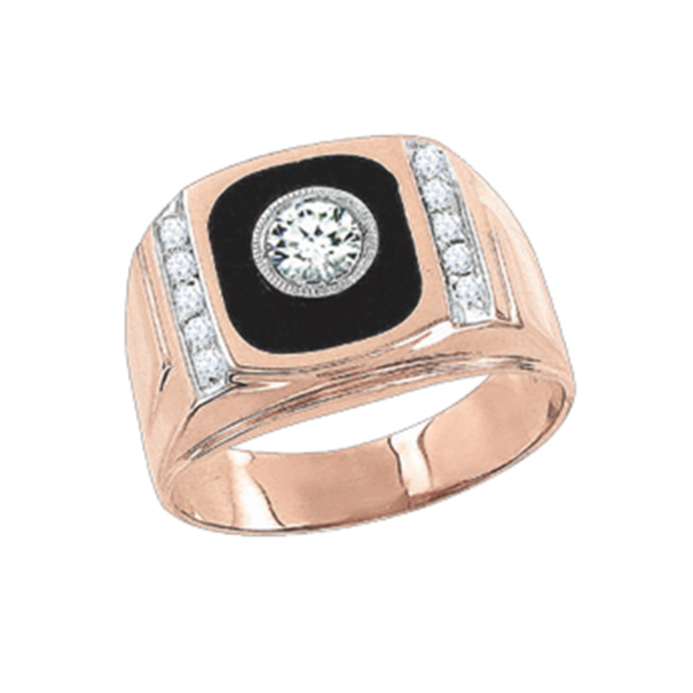 Стильное мужское кольцо из красного золота 585 пробы с черной эмалью и цирконием