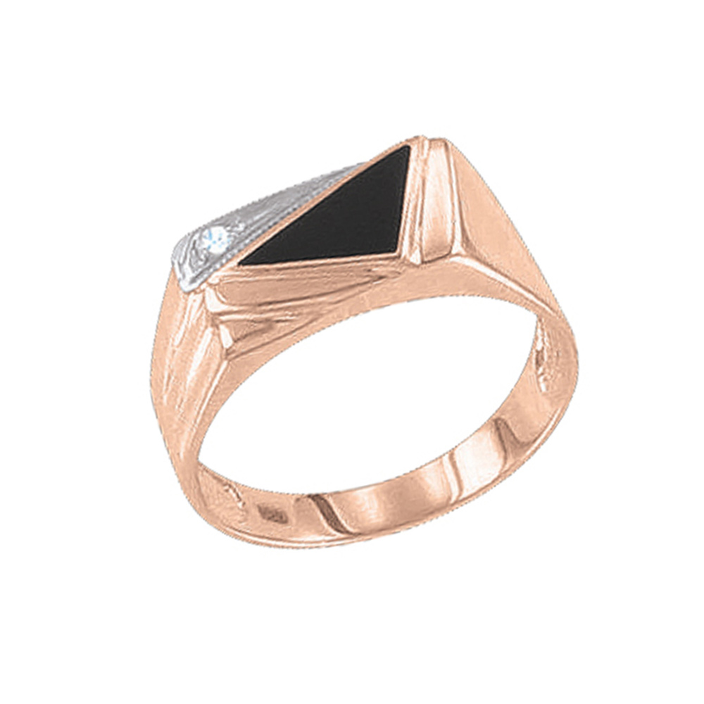 Мужское кольцо из красного золота 585 пробы с черным ониксом и цирконием