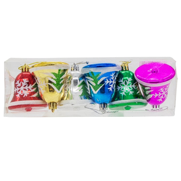 Набор елочных украшений из 6 разноцветных колокольчиков, 8 см