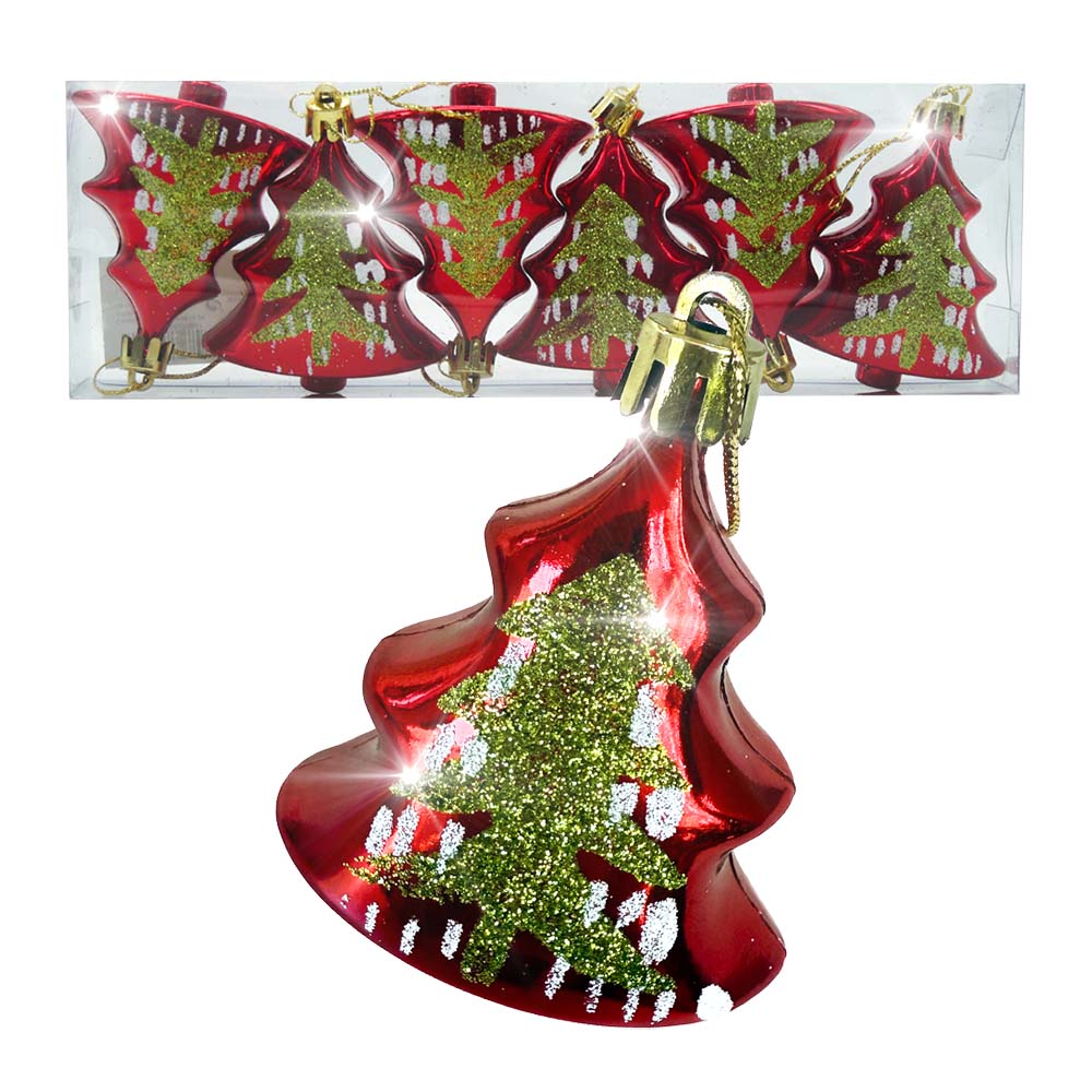 Набор елочных украшений "Рождественская ёлка" (6 шт.), красные, 8 см