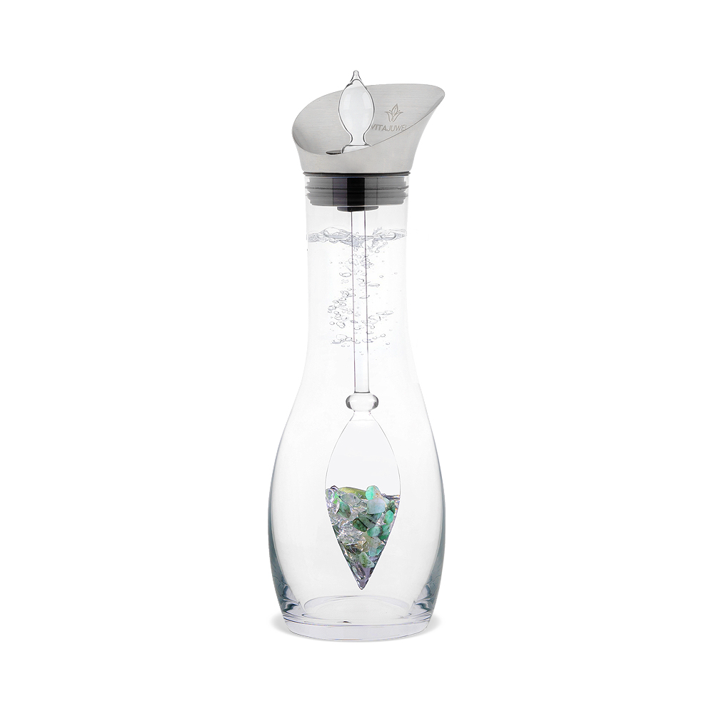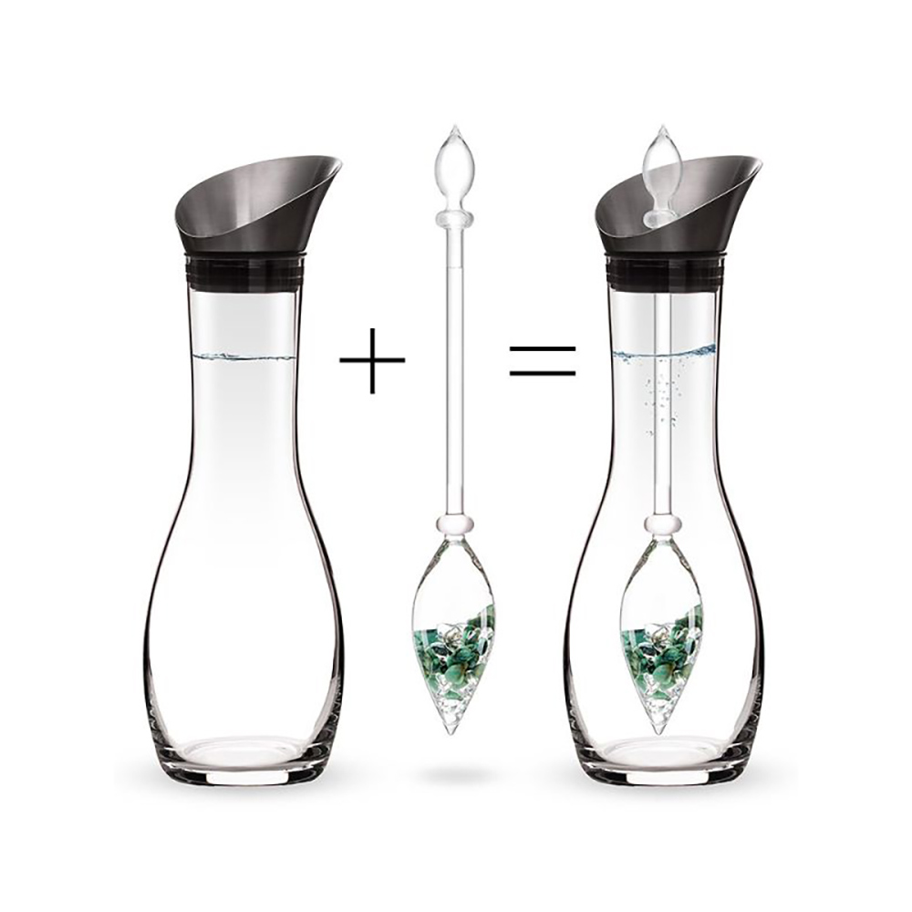 Именно так и следует наслаждаться водой! Забудьте об обычных пластиковых кувшинах и доставьте себе удовольствие пить из элегантного графина с изящным фиалом, наполненной драгоценными кристаллами!Этот эксклюзивный набор, состоящий из стеклянного графина и специального флакона с драгоценными камнями, идеально подходит для обогащения вашей питьевой воды! К тому же, благодаря продуманному лаконичному дизайну, выглядит он невероятно стильно! А эффективность смеси кристаллов, которую мы подобрали для этого набора, проверена временем. Примечательно, что каждый флакон для драгоценных камней выдувается из высококачественного стекла, не загрязняющего окружающую среду, мастерами-ремесленниками в ходе сложного запатентованного производственного процесса. Стеклянные пробирки наполняются исключительно отобранными вручную и тщательно очищенными драгоценными камнями. Надежно и словно паря в воздухе, они удерживаются в крышке графина.