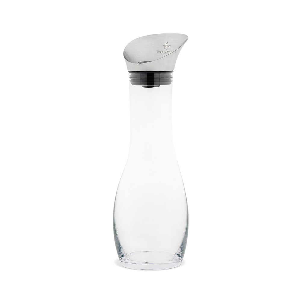 Пользоваться этим графином крайне просто: прикрепите флакон с кристаллами к носику графина, а затем вставьте его вместе с флаконом в сосуд. Флакон надежно крепится к крышке, благодаря чему он не бьется о стенку графина. Вы можете наполнить кувшин питьевой водой через носик. Благодаря уникальной форме сосуд можно наполнять и опорожнять, не снимая носик. Он также защищает вашу питьевую воду от внешнего загрязнения. Вы можете наслаждаться водой, обогащенной кристаллами, примерно через 10 минут после того, как наполнили графин.