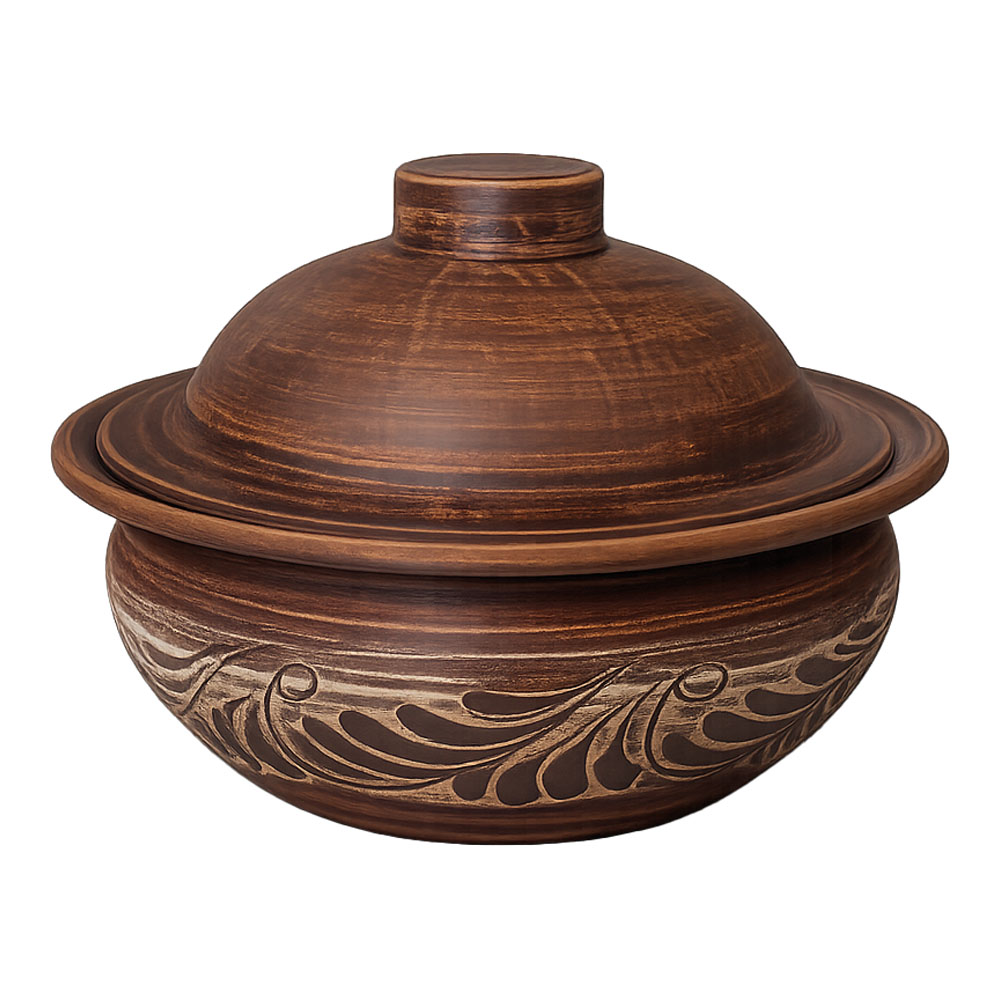 Натуральная глина обеспечивает равномерный прогрев и медленное томление, благодаря чему блюда получаются особенно ароматными и нежными. Горшочки идеально подходят для жаркого, тушёных блюд, запеканок, каш и порционных обедов. Классический дизайн с рельефным орнаментом делает набор не только практичной, но и эстетичной частью кухни или праздничного стола.