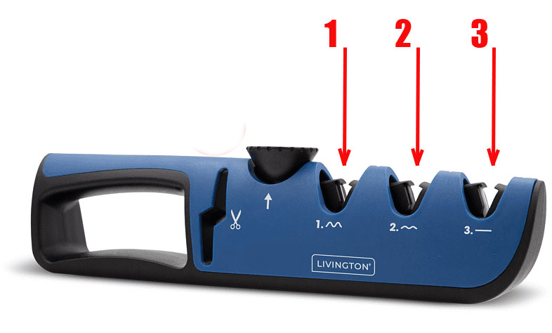 Шлифовка, заточка и полировка с помощью одного инструмента!Точилка для ножей имеет 3 слота для заточки: