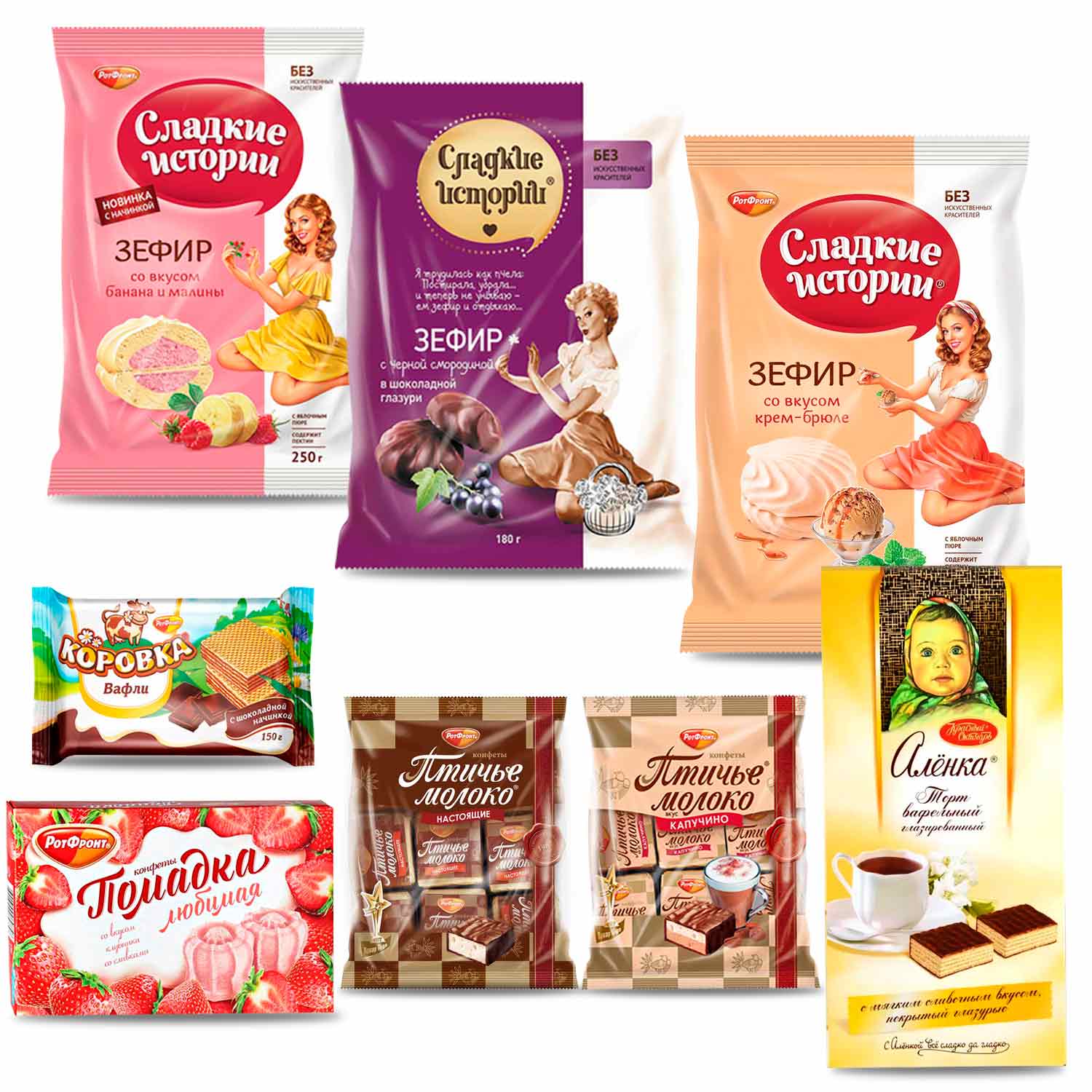 Наш набор любимых сладостей из 8 сортов сочетает в себе лучшие деликатесы для сладкоежек и любителей особых лакомств. В набор входят:- РотФронт Помадка со вкусом клубники и сливок (250 г) - нежная и фруктовая