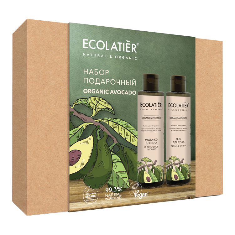 Набор подарочный Organic AVOCADO молочко для тела + гель для душа "ECOLATIER" 200 + 200 мл