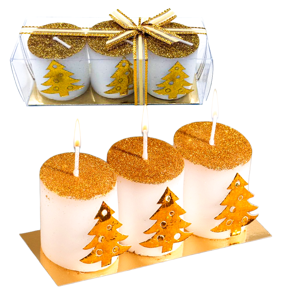 Набор свечей, с золотыми елочными узорами, 13 x 4,5 x 4,5 см (3 штуки)