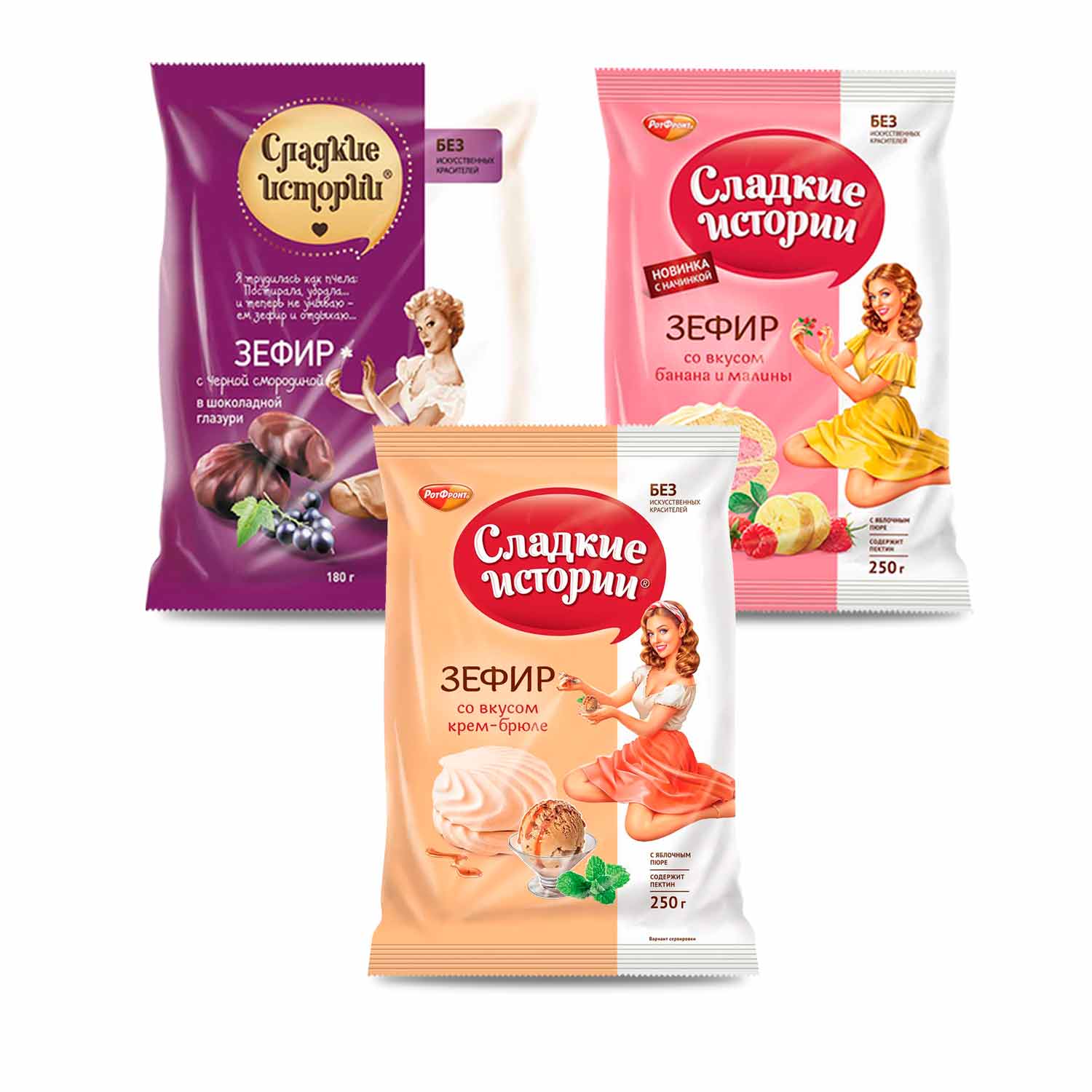 Набор зефира "Сладкие истории" - воздушное наслаждение тремя восхитительными вкусами (всего нетто 680 г)