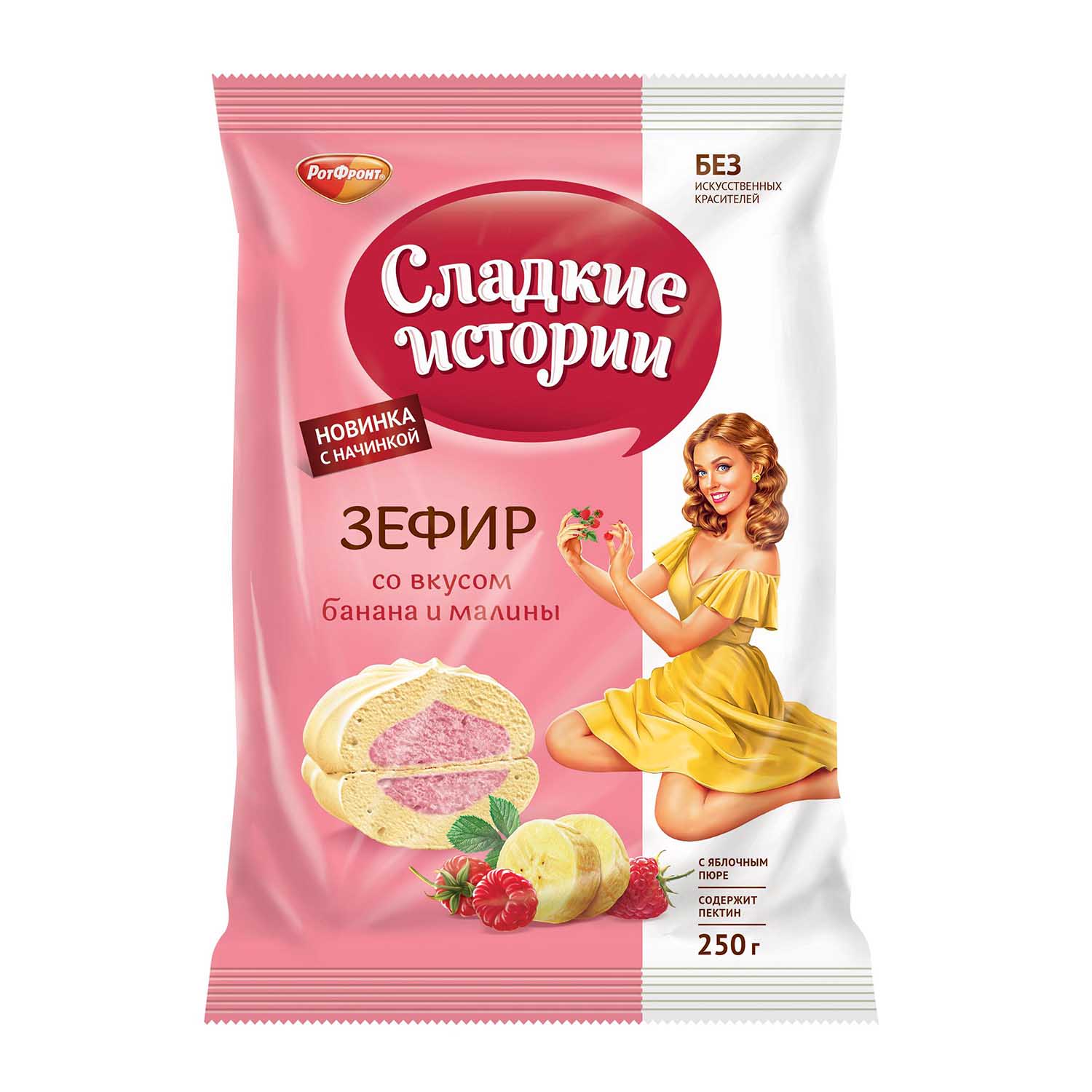 Набор зефира "Сладкие истории" от фабрики Рот Фронт окунет вас в мир нежной сладости и неотразимых вкусов. Этот легкий и воздушный зефир буквально тает во рту и радует тремя уникальными вкусами:- Бананово-малиновый вкус (250 г): Фруктовое сочетание сливочного банана и освежающей малины для идеального момента наслаждения.