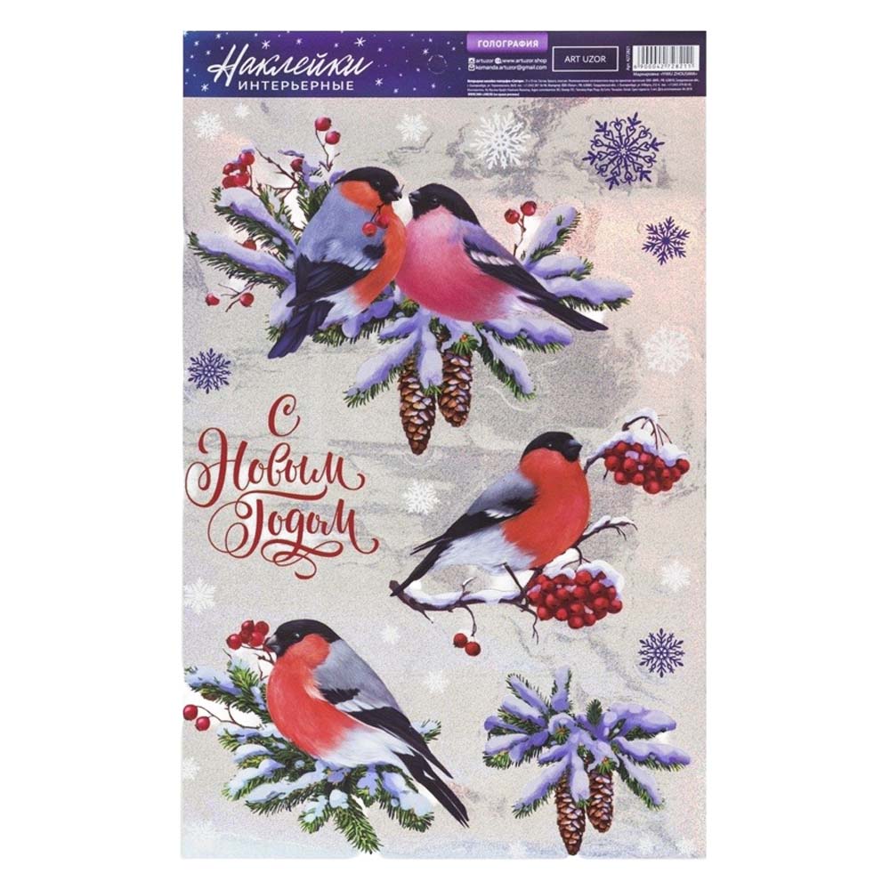 Наклейки интерьерные "Снегири", голографические,2 шт., 21 × 29,5 см