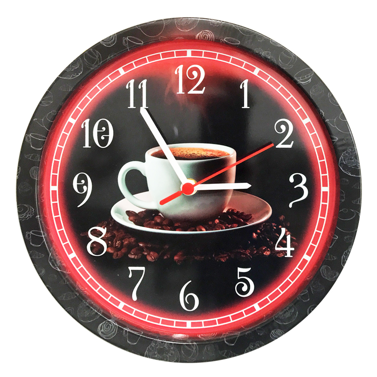 Настенные часы "Кофейная чашка" из белой литографированной жести, Ø 28 см