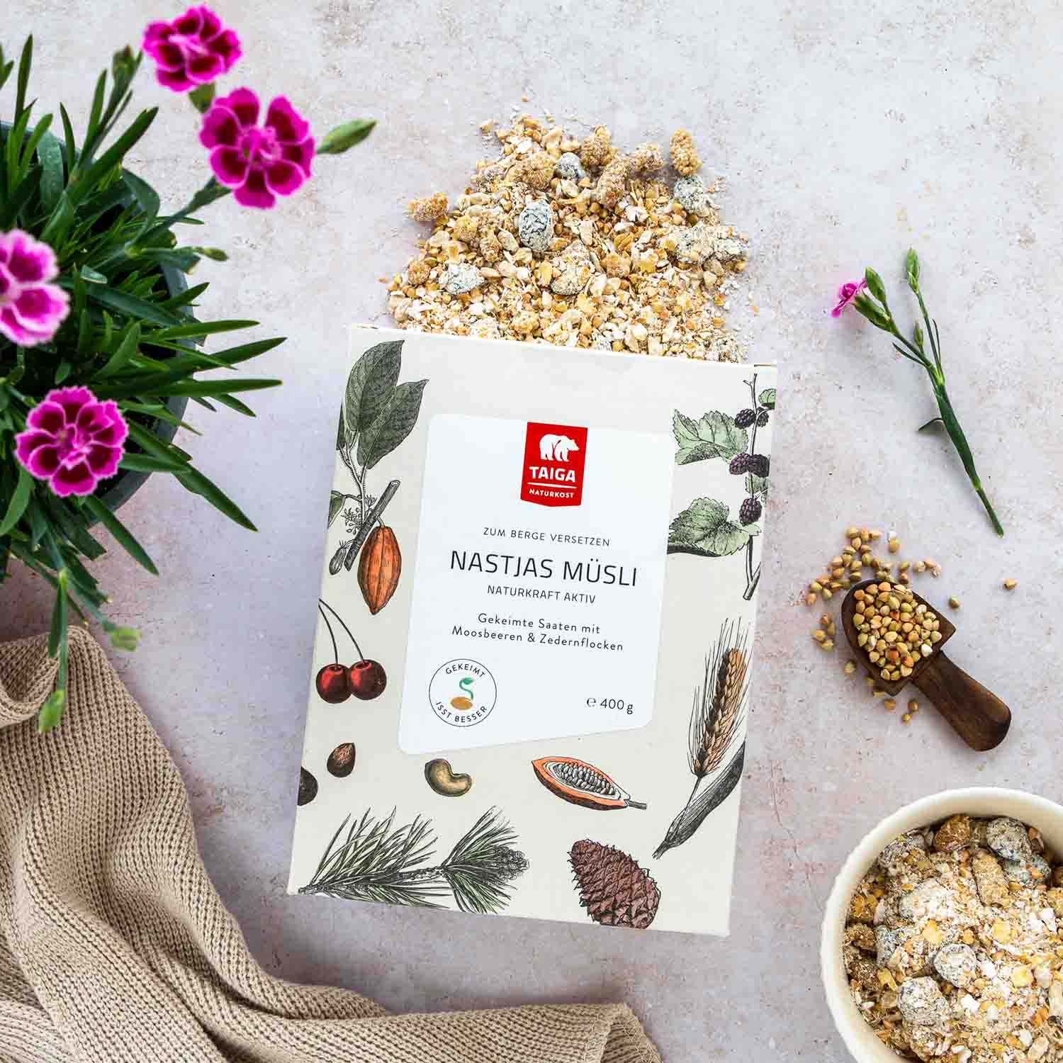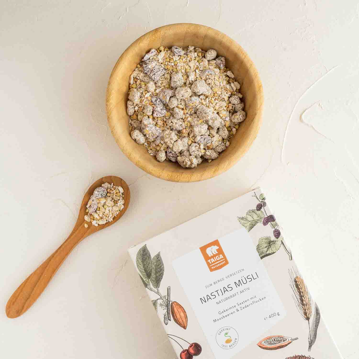 Насладитесь магией тайги и почувствуйте разницу с обычными мюсли! Высококачественные ингредиенты пророщенного овса и гречки сочетаются с орехами сибирского кедра и кедровыми хлопьями.Это правильный заряд бодрости утром или между приемами пищи - позвольте себе освежиться медовым вкусом шелковицы и фруктовой кислинкой клюквы!