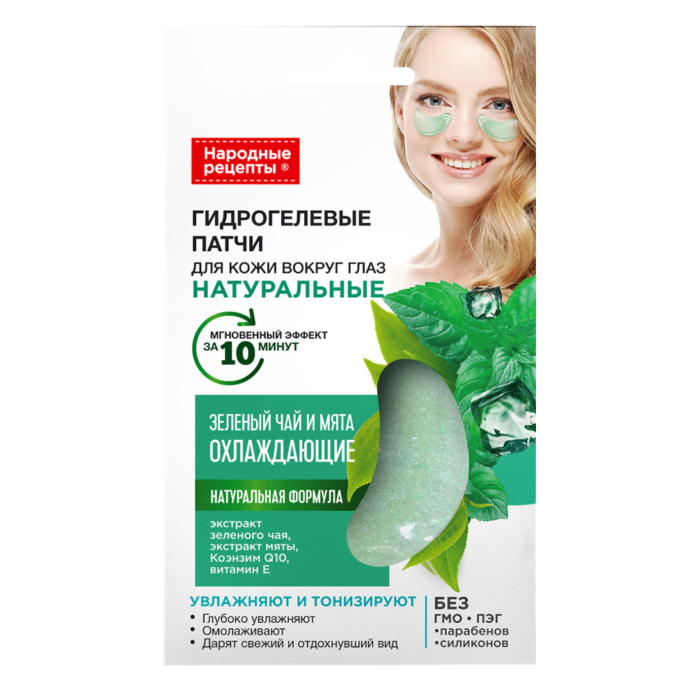 Fito Kosmetik Натуральные гидрогелевые патчи для кожи вокруг глаз "Зеленый чай и мята" охлаждающие, 7 г