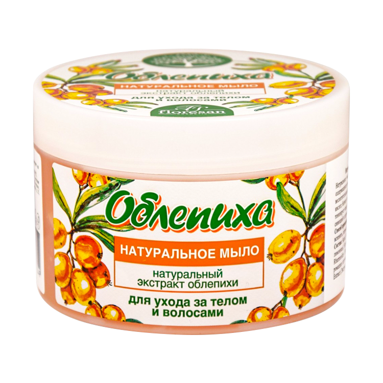 - Экстракт облепихи, входящий в состав мыла, питает и тонизирует кожу, придает волосам шелковистость и блеск