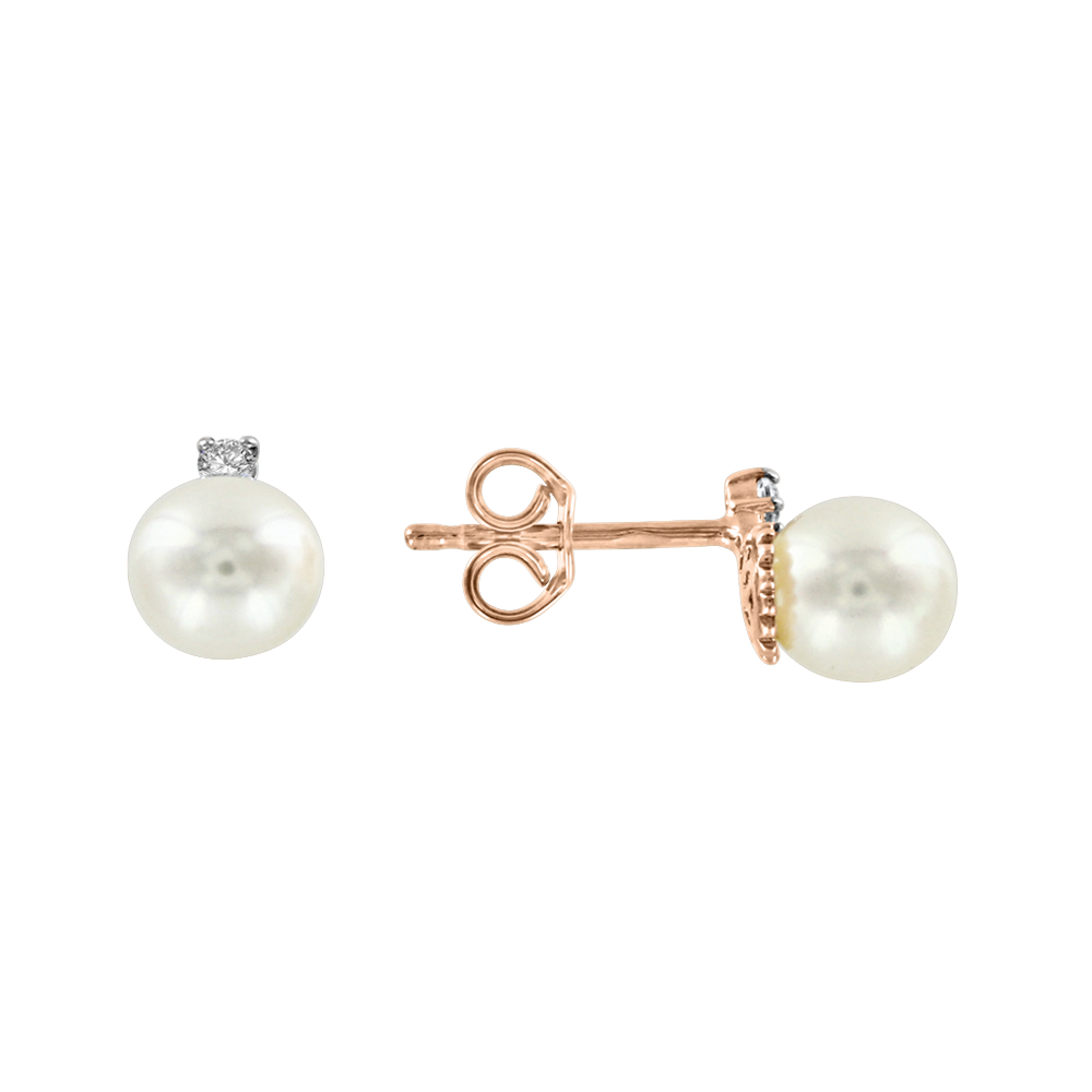 Нежные серьги - пуссеты из красного золота 585 пробы, с жемчугами и фианитами, диаметром ≈ 5 мм. Жемчуг считается символом долговечности, процветания и благополучия. Серьги с этими прекрасными камнями не только дополнят вашу естественную красоту, но и станут амулетом. Игра сверкающих фианитов, притягивает взгляды и завораживает, подчеркивая матовый блеск жемчуга.