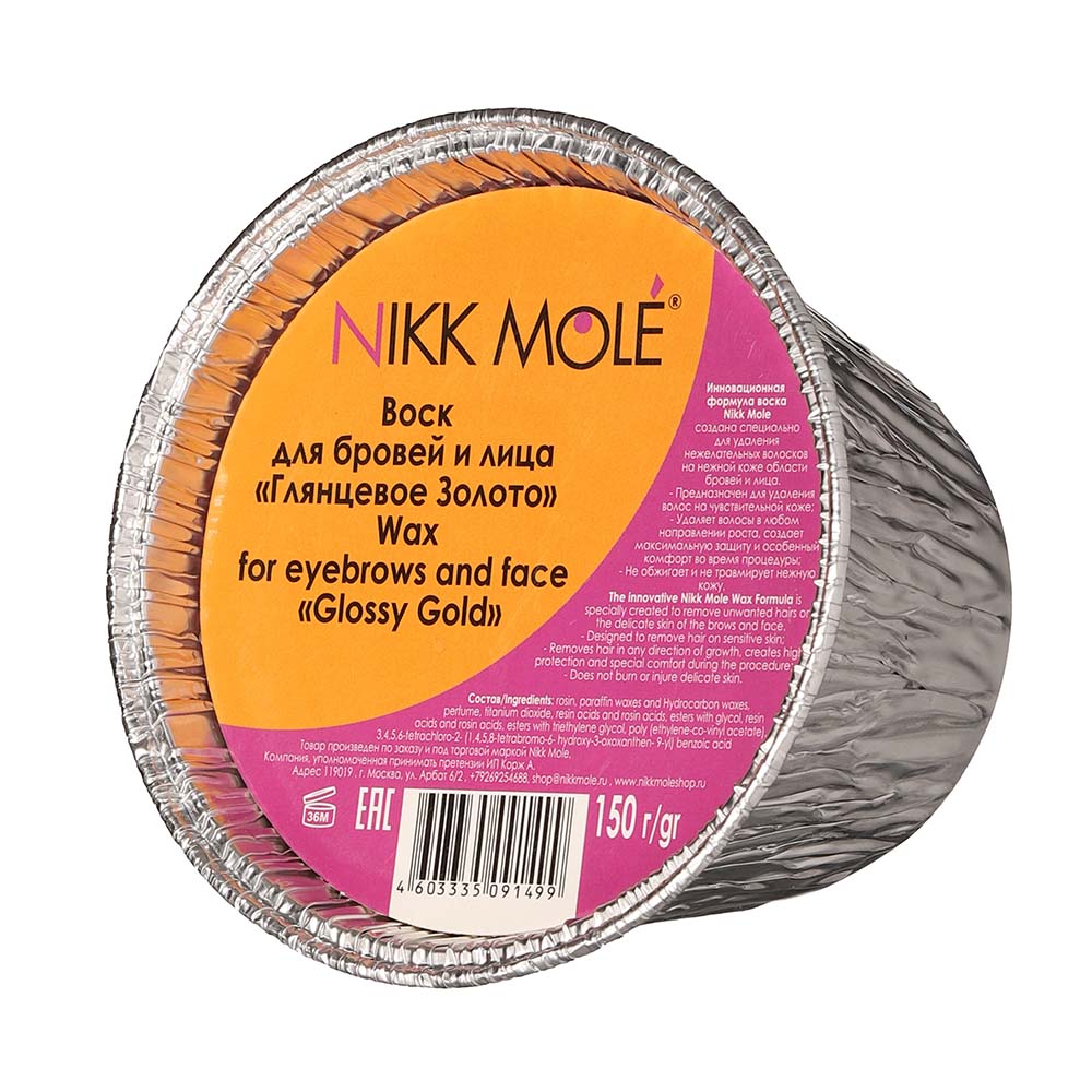 Nikk Mole Воск для чувствительной кожи бровей и лица "Глянцевое золото" (брикет), 150 г