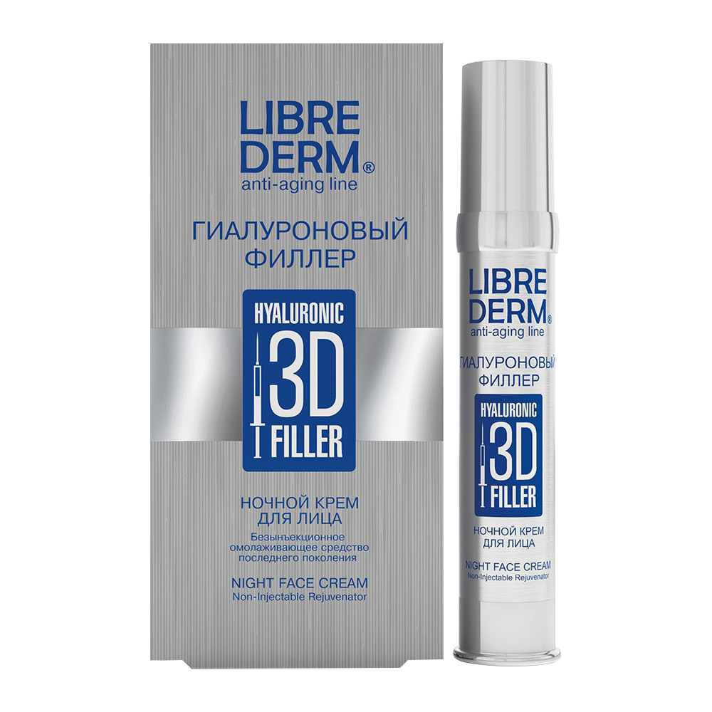 Гиалуроновый филлер 3D Anti-age Librederm, ночной крем для лица - безынъекционное омолаживающее средство последнего поколения, 30 мл.