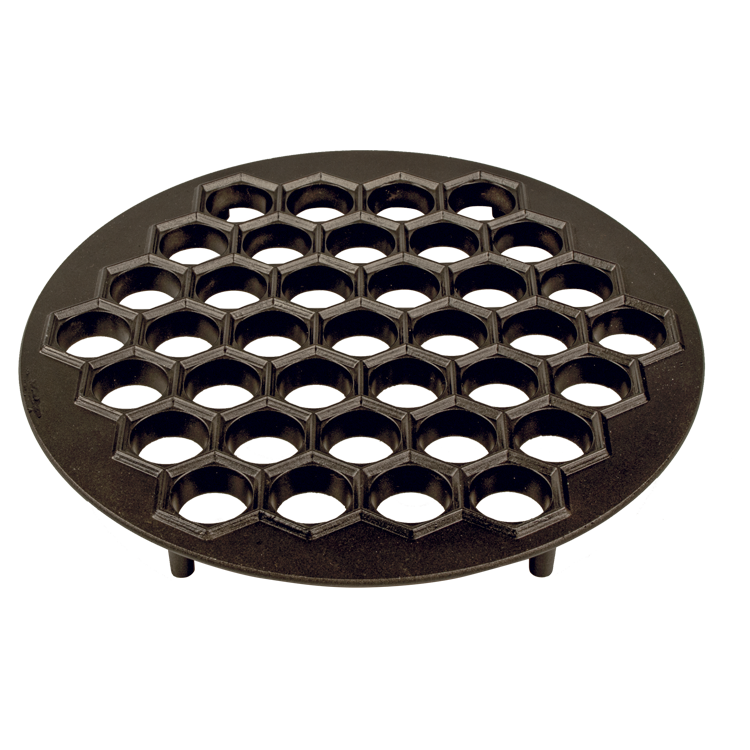 Форма для лепки пельменей — это незаменимый предмет на каждой кухне. Металлическая пельменница очень проста в использовании, благодаря ее простоте вы сможете быстро и качественно налепить пельменей для всей вашей семьи.Раскатайте первый слой теста толщиной 2-3 мм, положите его на форму и наполните фаршем чуть меньше отверстия.