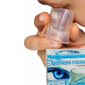 - Наклоните голову, плотно прижмите чашу с водой или раствором к глазу, энергично моргните или просто откройте глаз и аккуратно нажмите на дно чаши