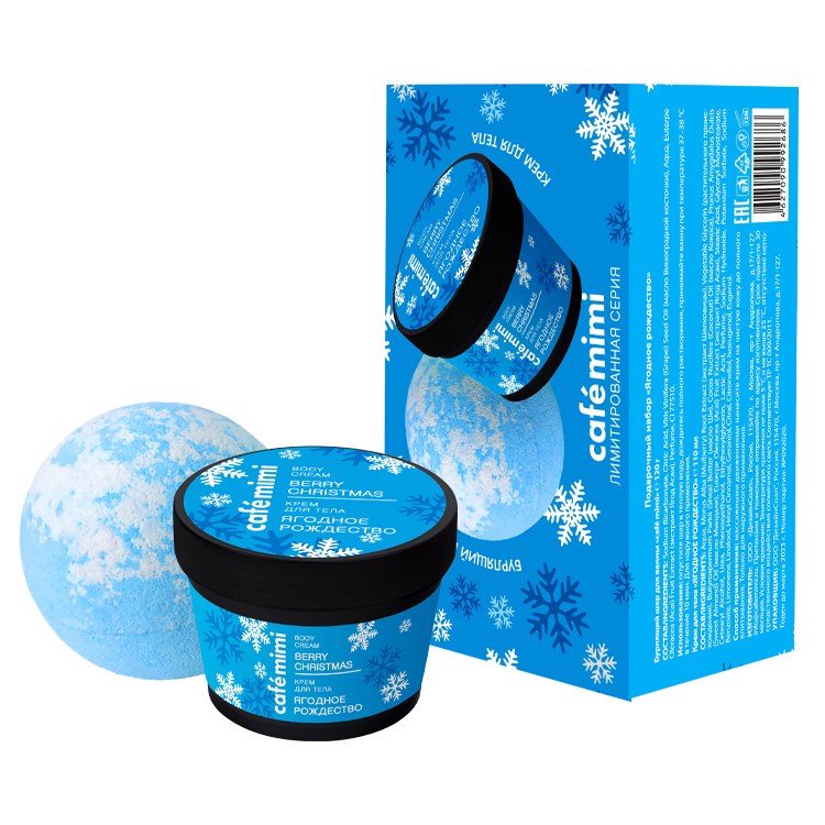 Подарочный набор café mimi "Ягодное Рождество" крем для тела + шар для ванны, 110 мл + 120 г