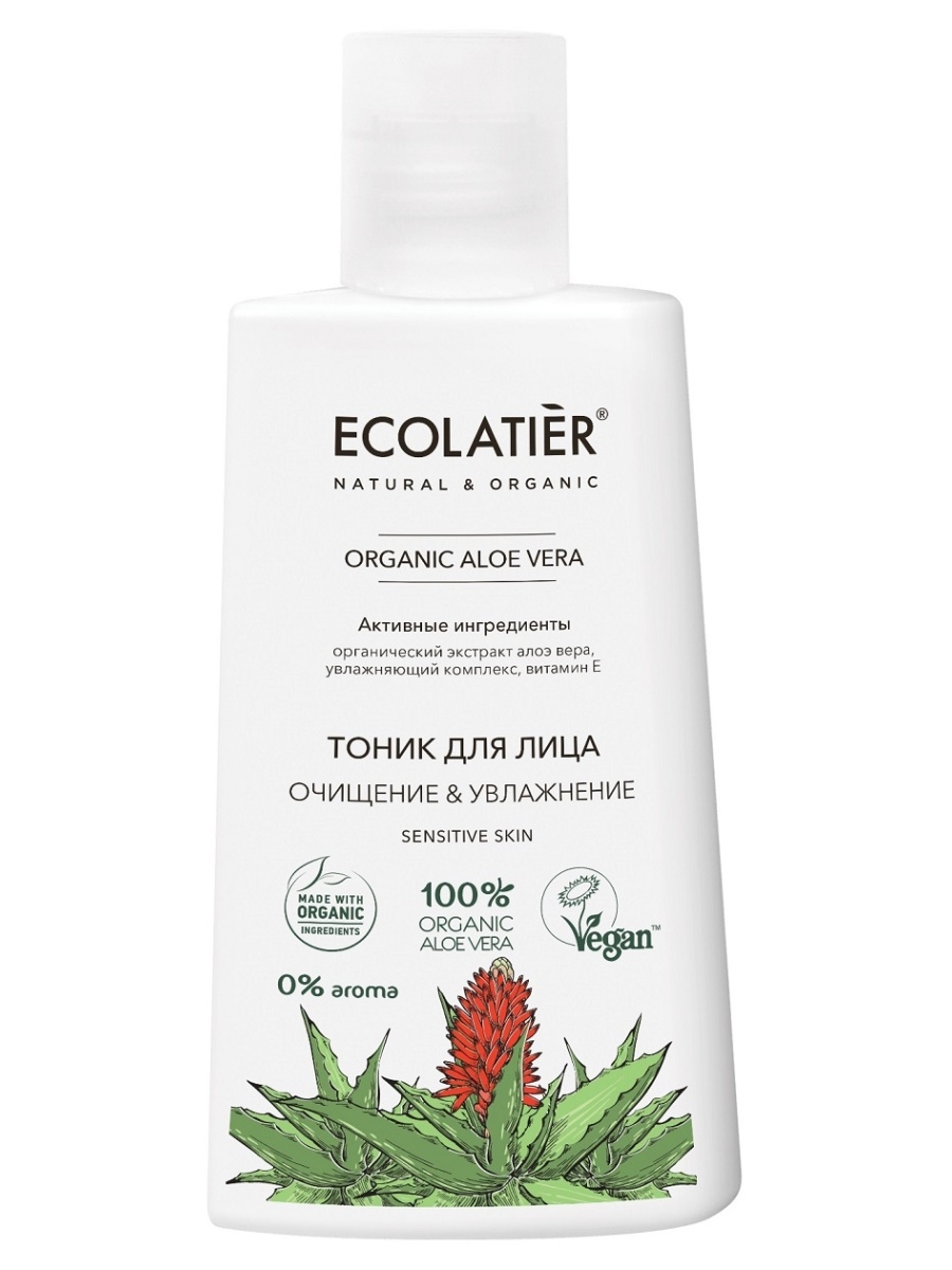 ECOLATIER Подарочный набор "Organic ALOE VERA" (Тоник для лица 150мл + Гель для умывания 75мл + Крем для лица 30 МЛ)
