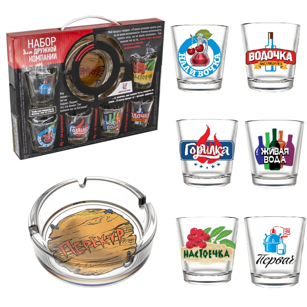 - Содержание: 6 рюмок (по 50 мл) и пепельница