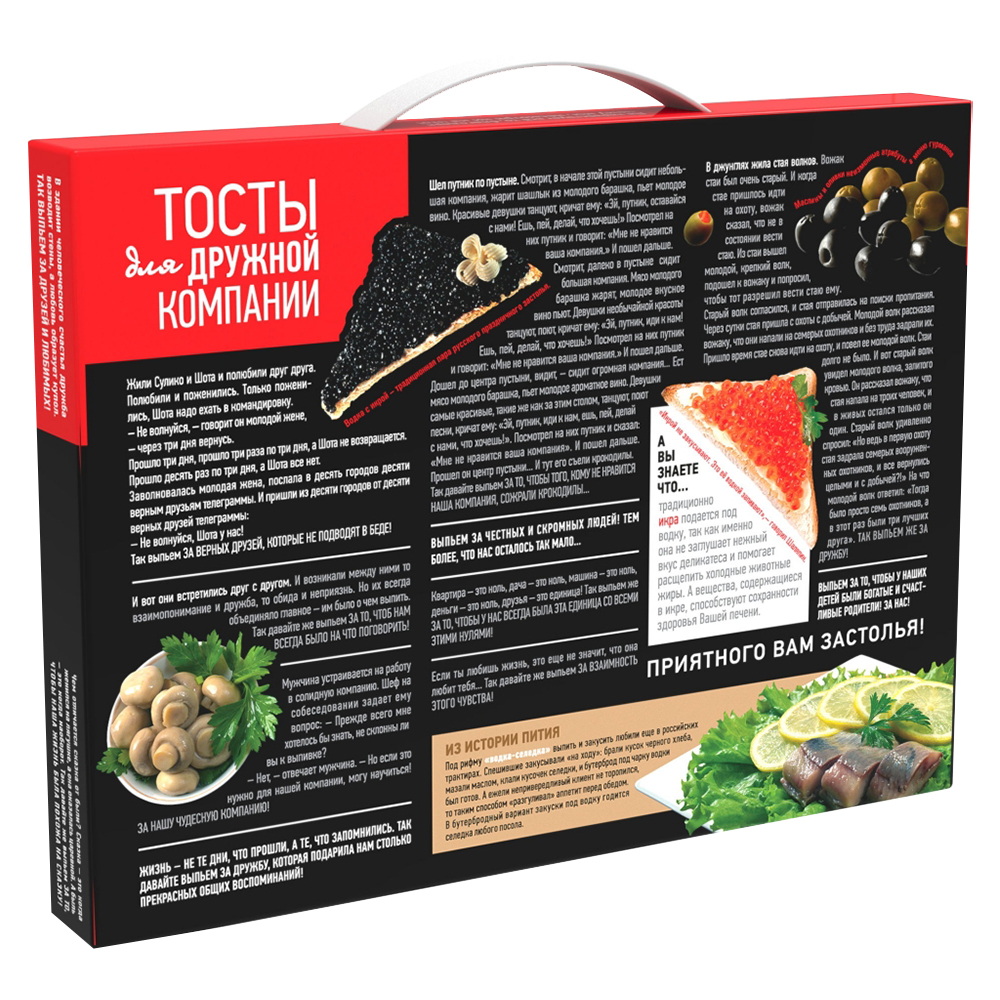 - Упаковка: печать с историями застолья и тостами для создания веселой атмосферы