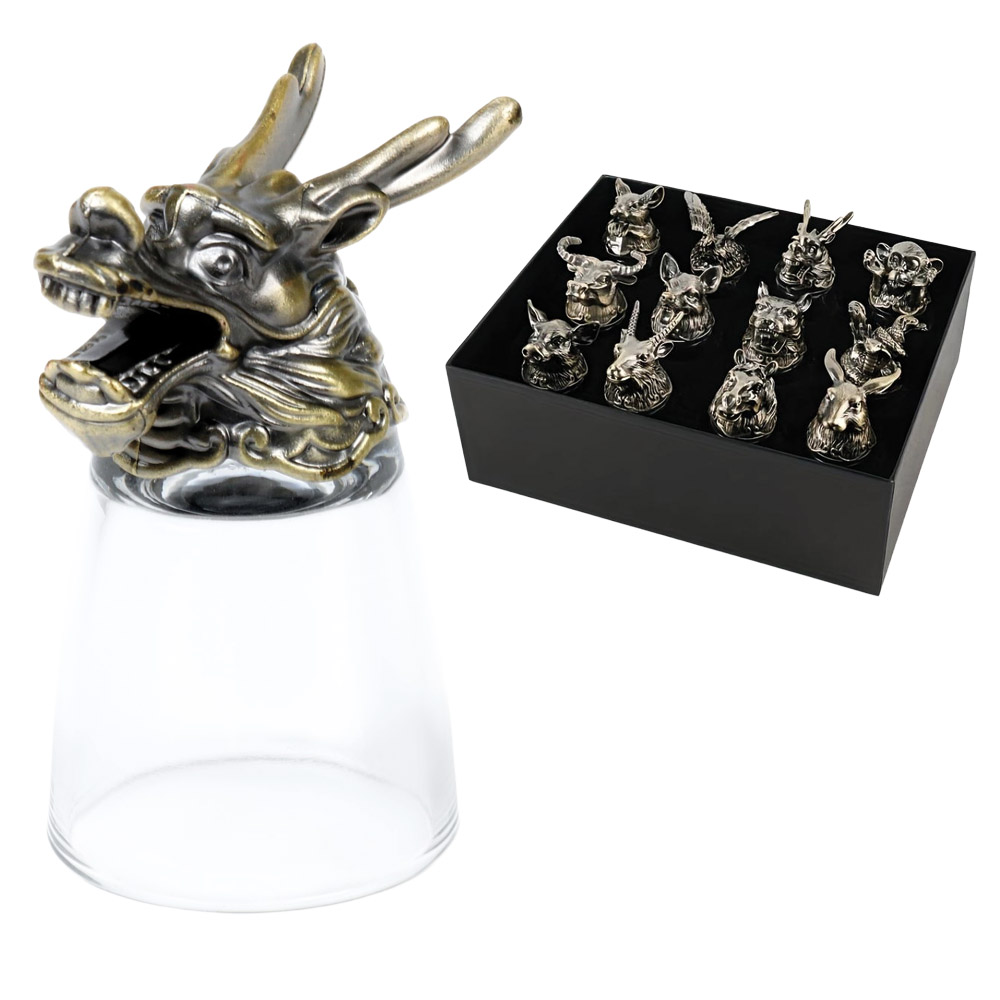 - Эксклюзивный дизайн с символами зодиака: каждый из 12 стаканов (30 мл) украшен символом китайского зодиака - настоящий объект для внимания и разговоров на любом празднике.