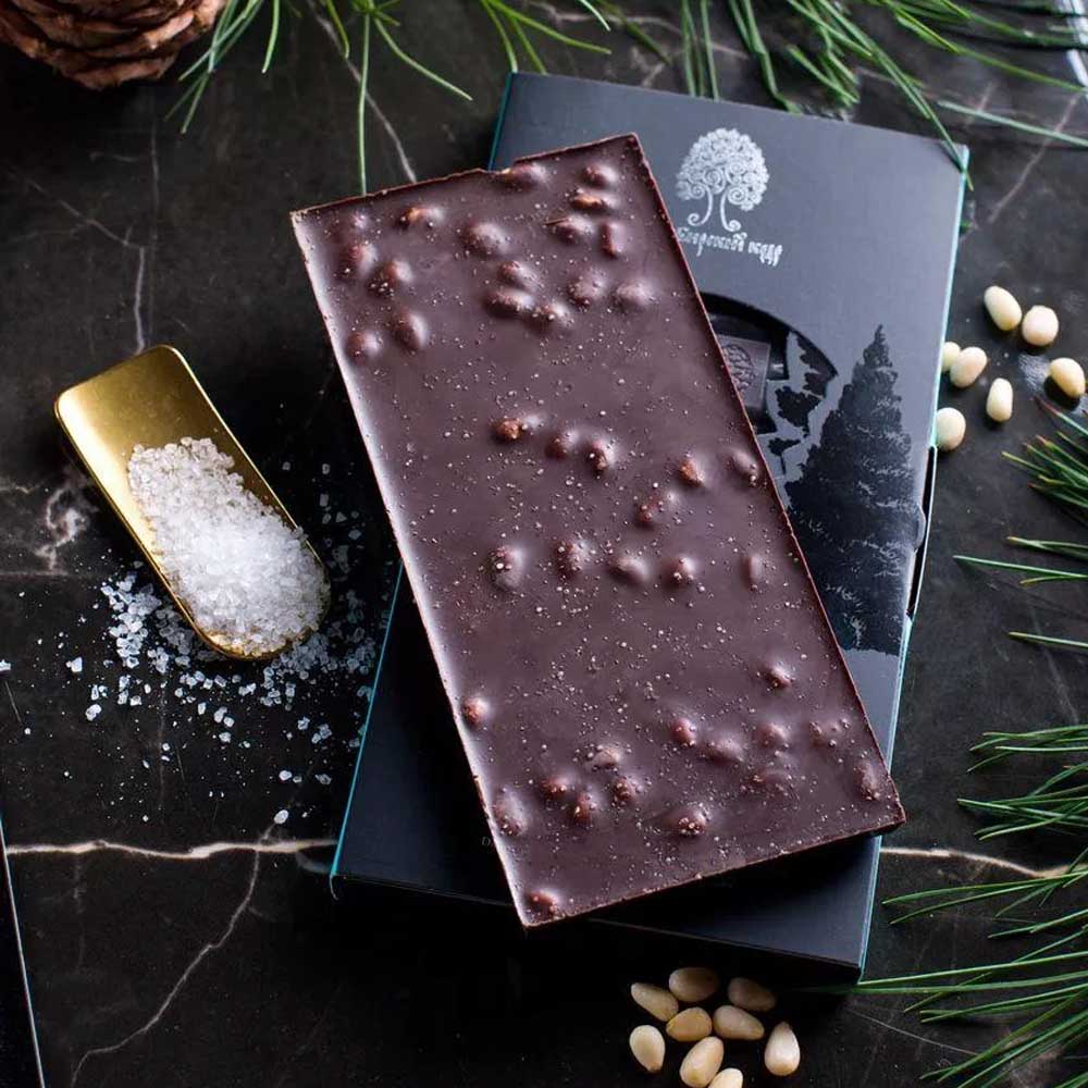 - Тёмный шоколад с кедровыми орешками и кристаллами соли, 100 г
