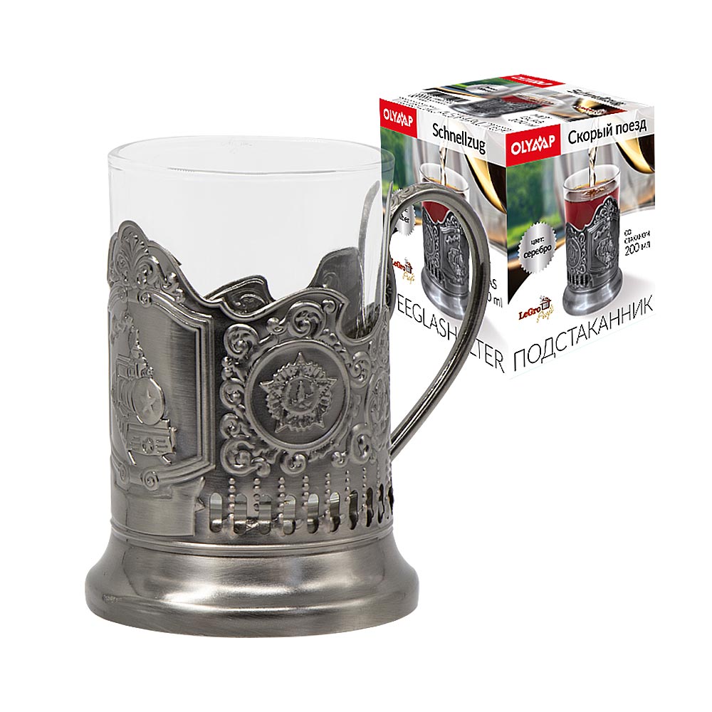 Подстаканник серебряный "Скорый поезд" со стаканом 200 мл