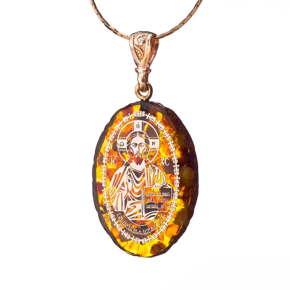 Подвеска-иконка из янтаря с позолоченным ликом Господа Вседержителя