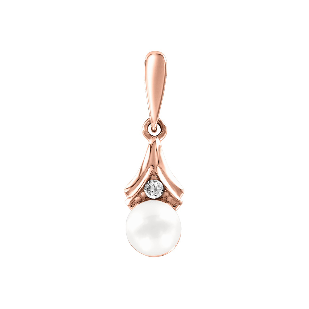 Подвеска из красного золота 585 пробы с жемчугом и фианитом