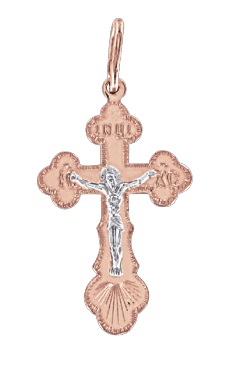 Подвеска Крест из красного и белого золота 585 пробы с гравировкой