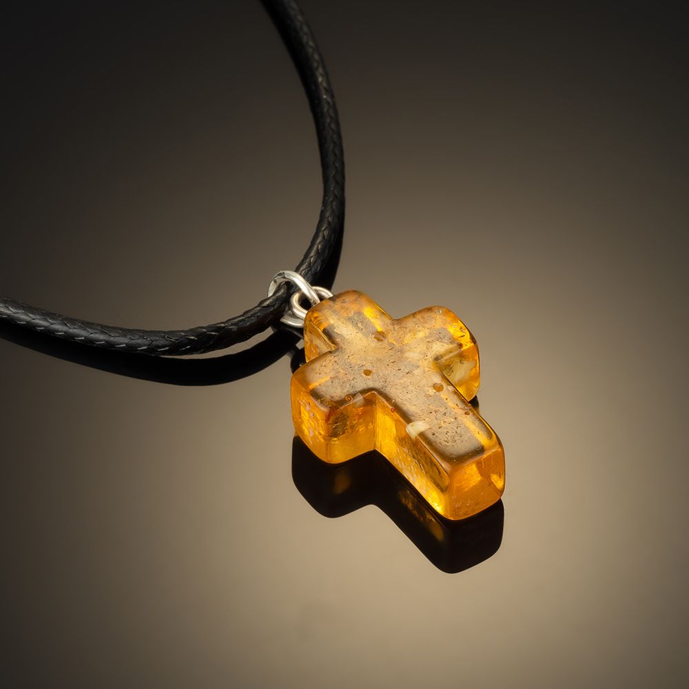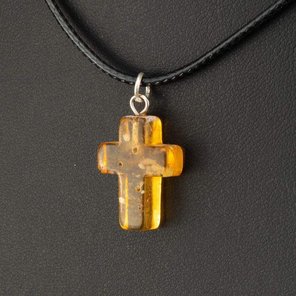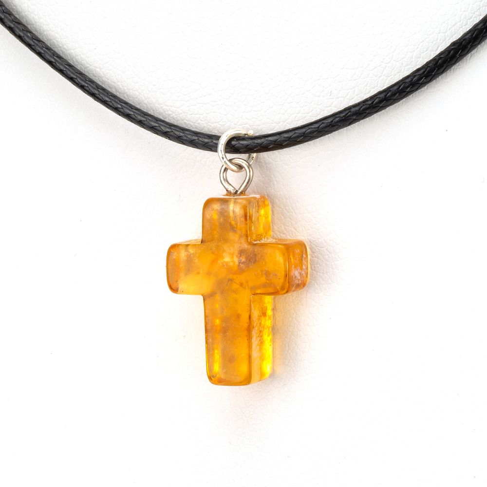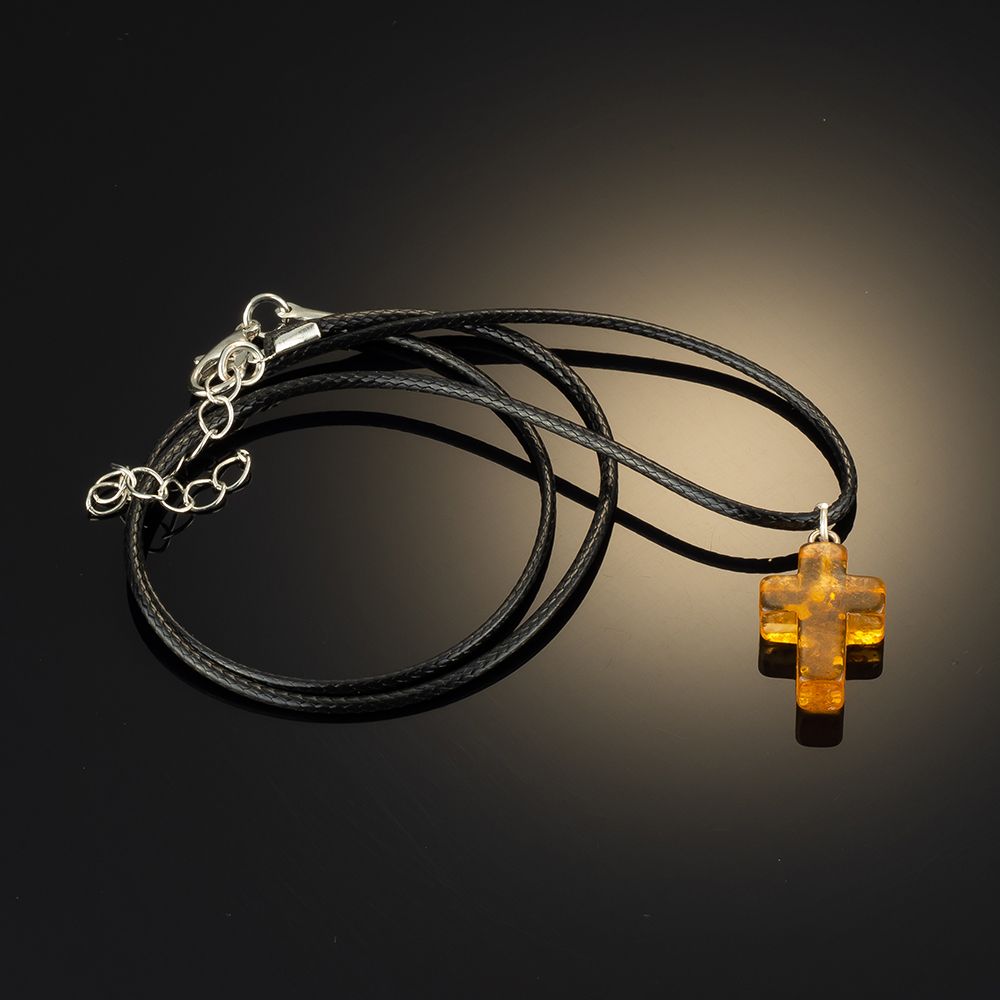 Подвеска крест из медового янтаря на шнурке