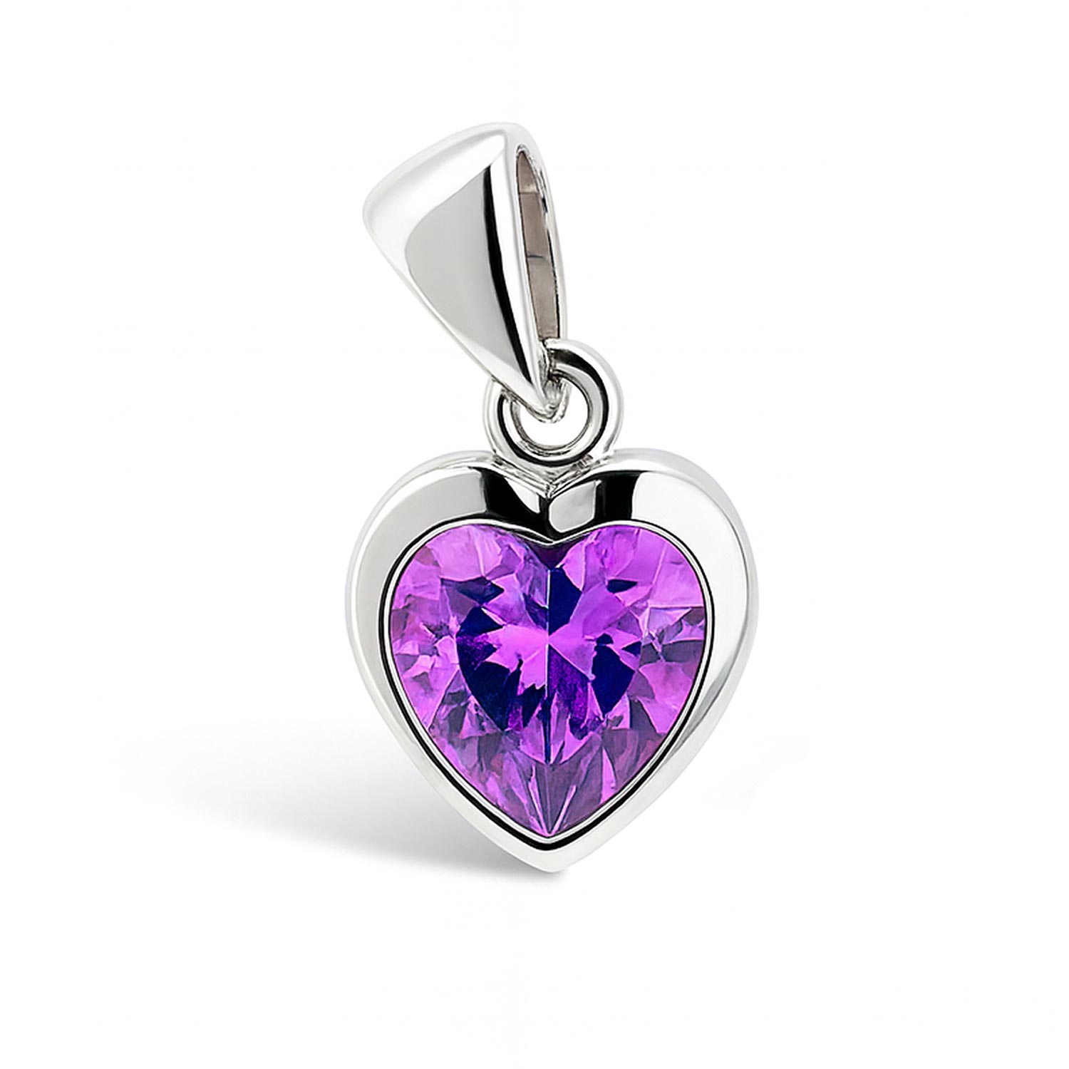 Милая подвеска-сердечко из серебра 925 пробы с фиолетовым цирконием + серебряная цепочка 50 см