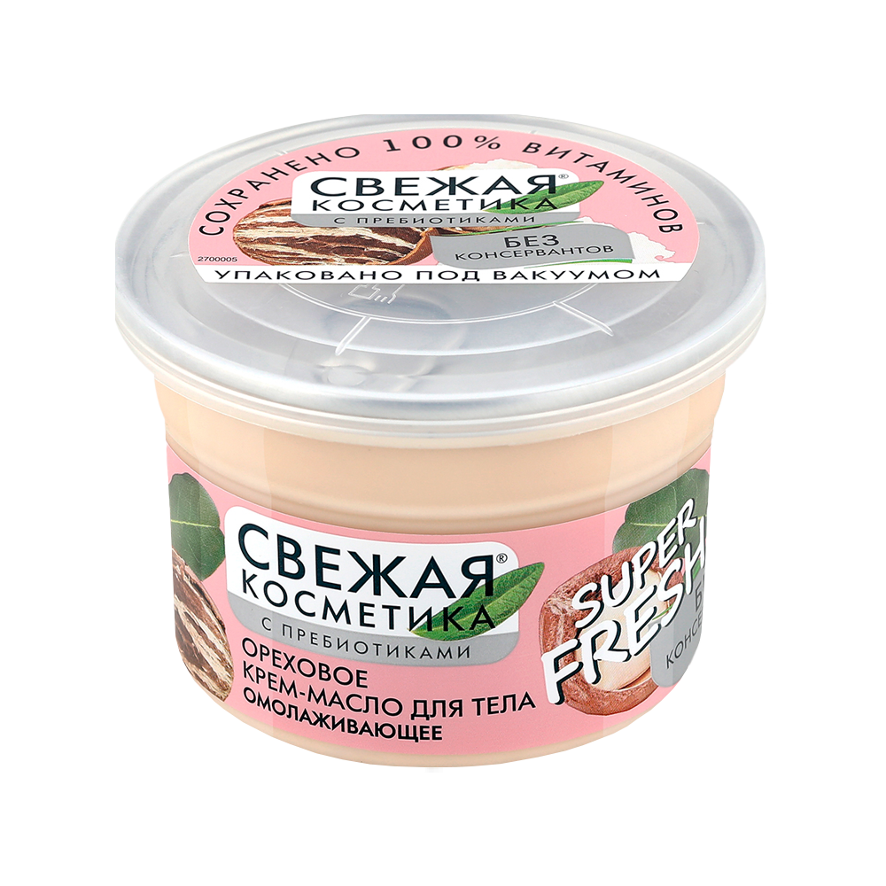 В этой баночке 100% натуральное омолаживающее крем-масло для тела, приготовленное из самых свежих ингредиентов и пребиотиков без вредных добавок и консервантов! В нем сохранено в первозданном виде 100% полезных свойств каждого компонента благодаря технологии вакуумной упаковки, чтобы подарить Вашей коже максимум пользы.