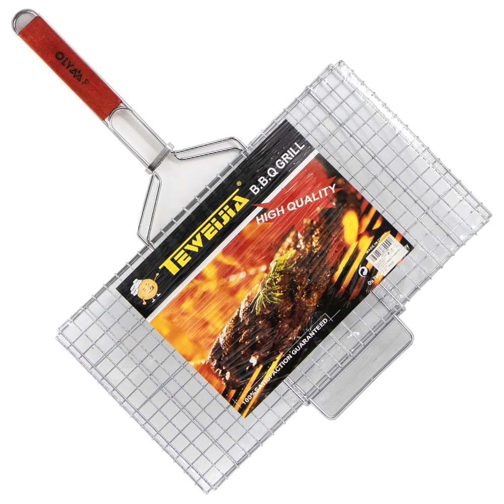 Прямоугольная решетка-гриль из нержавеющей стали с деревянной ручкой (32 x 60 см) - практичный и качественный аксессуар для любого барбекю. Благодаря большой поверхности решетки мясо, овощи или рыба могут быть приготовлены на гриле равномерно и безопасно. Регулируемая решетка обеспечивает оптимальную фиксацию продуктов. Эргономичная деревянная ручка облегчает обращение и защищает от нагрева. В походе, в саду или на балконе - с этой прочной решеткой барбекю любое барбекю будет успешным.