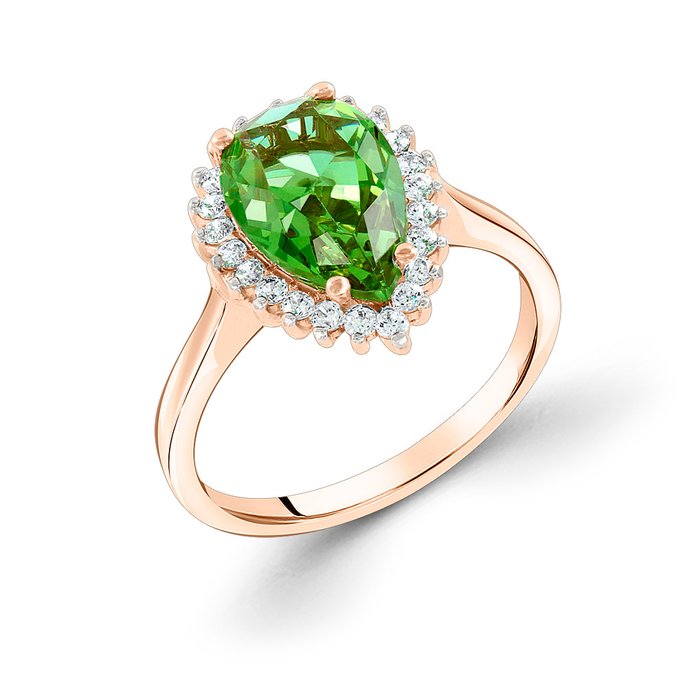 Притягательное женское кольцо из красного золота 585 пробы, с зеленым фианитом.