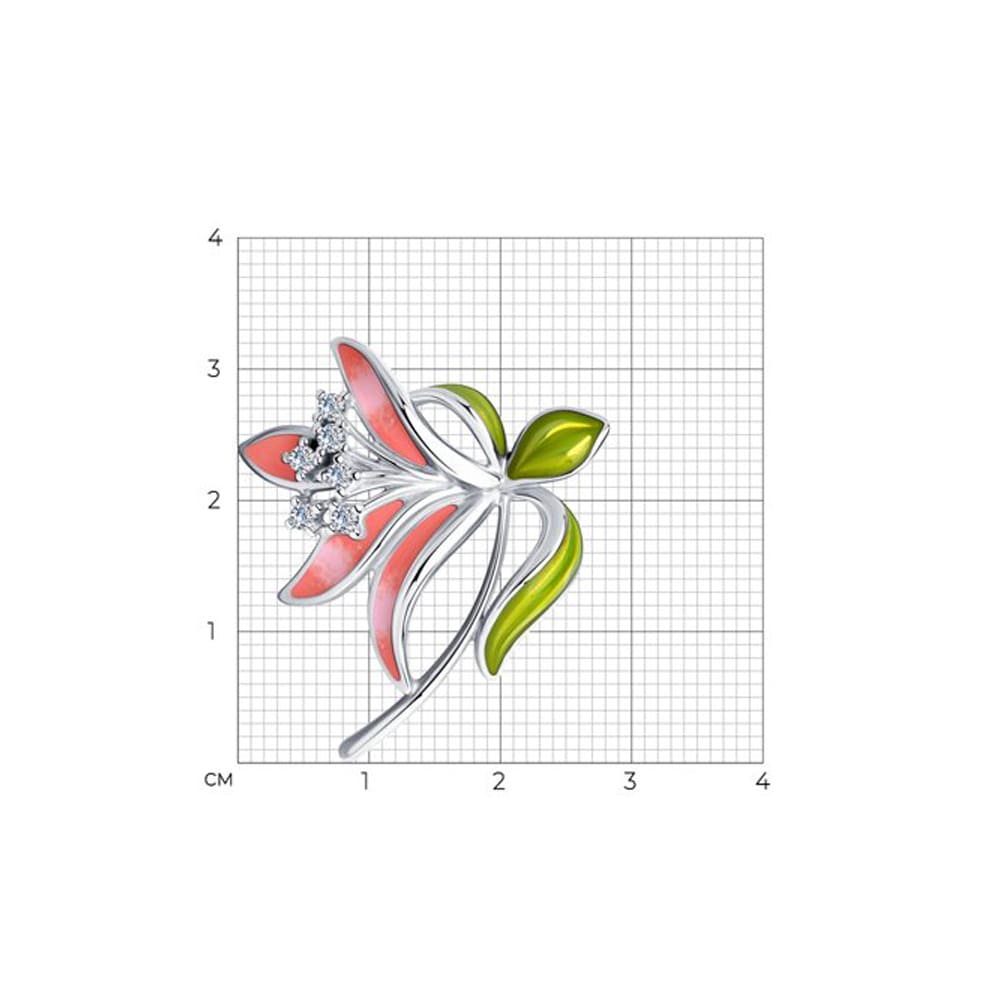 Серебряная брошь 925 пробы с эмалью и фианитами