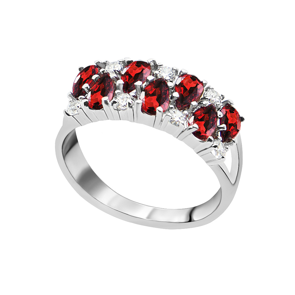 Серебряное кольцо 925 пробы с гранатом и фианитами