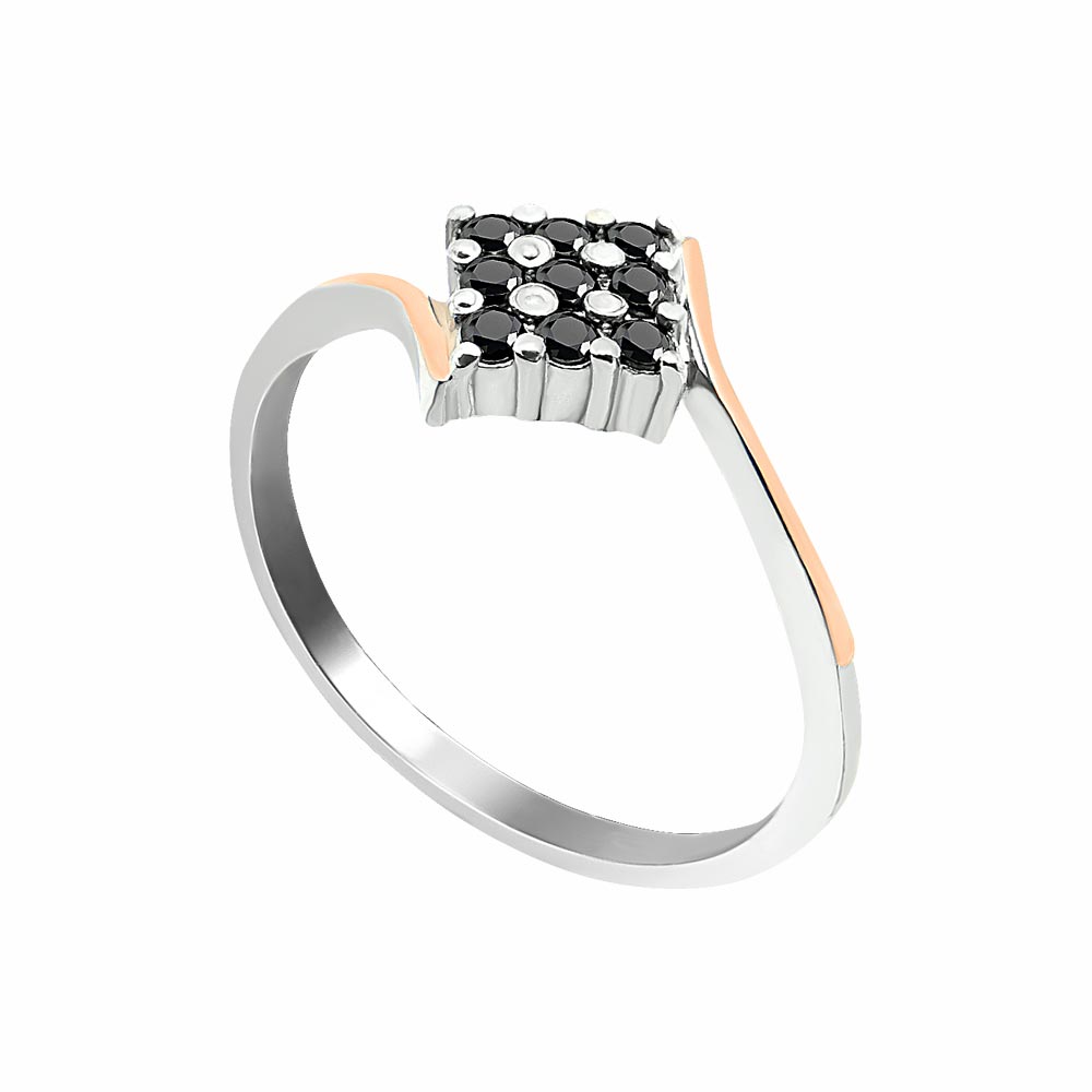 Серебряное кольцо 925 пробы со вставками золота 375 пробы и чёрными фианитами