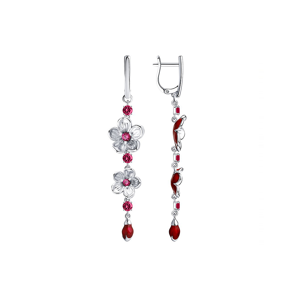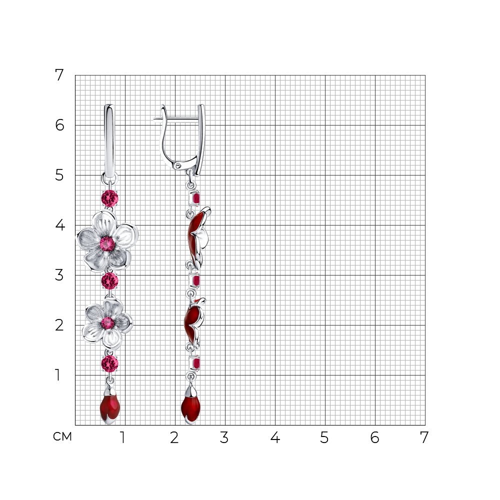 Серебряные серьги 925 пробы с эмалью и фианитами