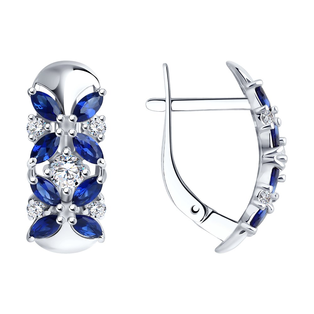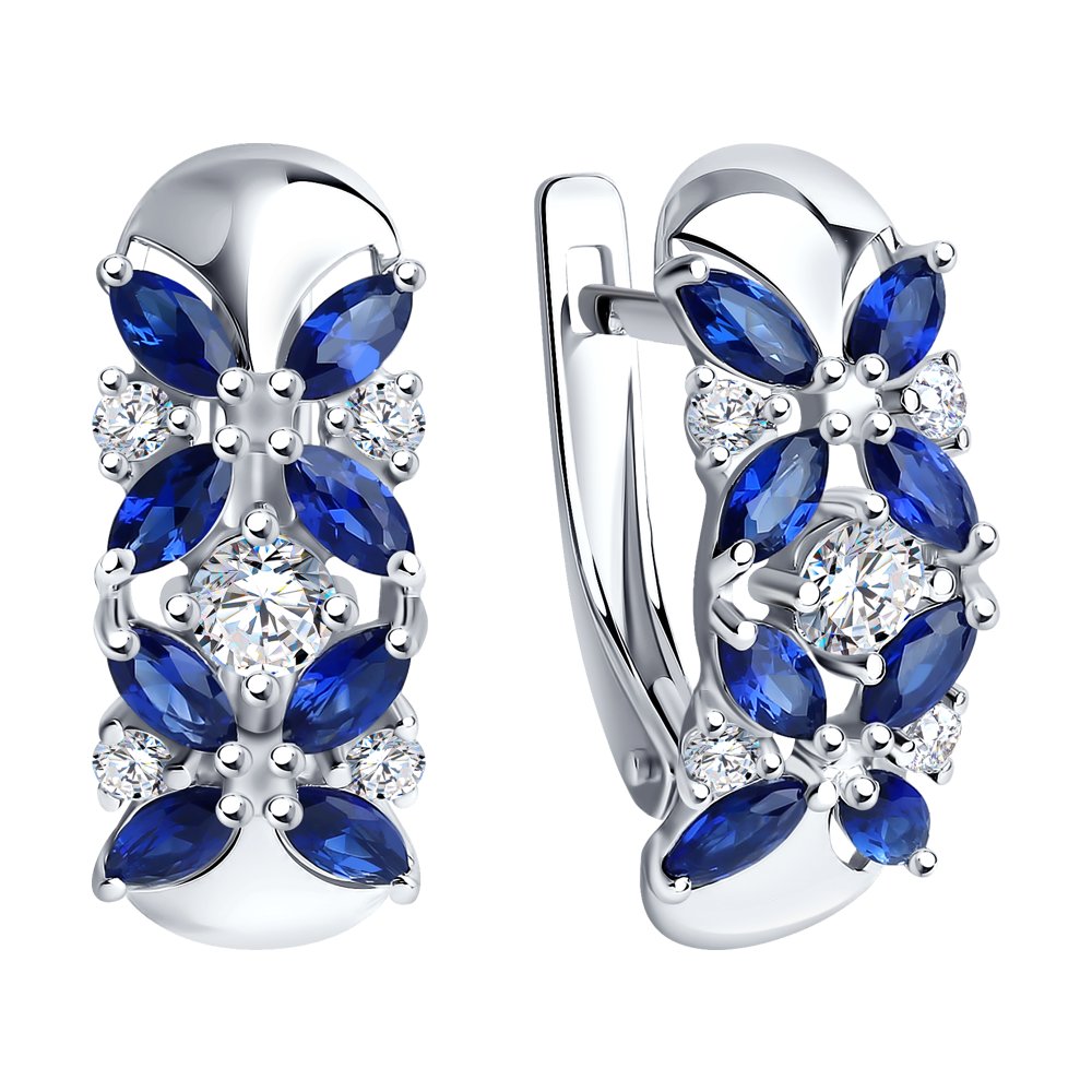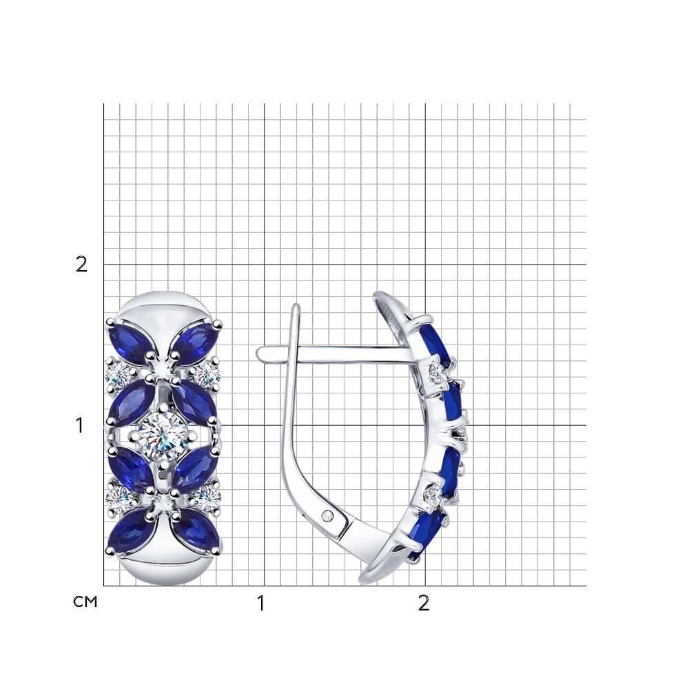 Серебряные серьги 925 пробы с гидротермальными сапфирами и фианитами