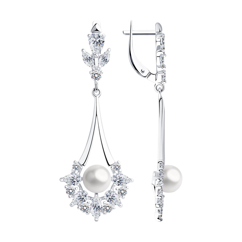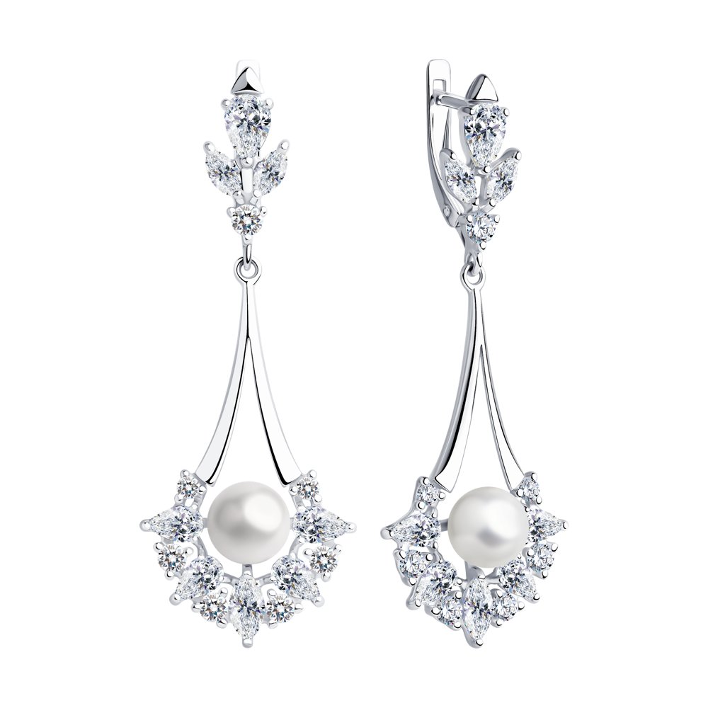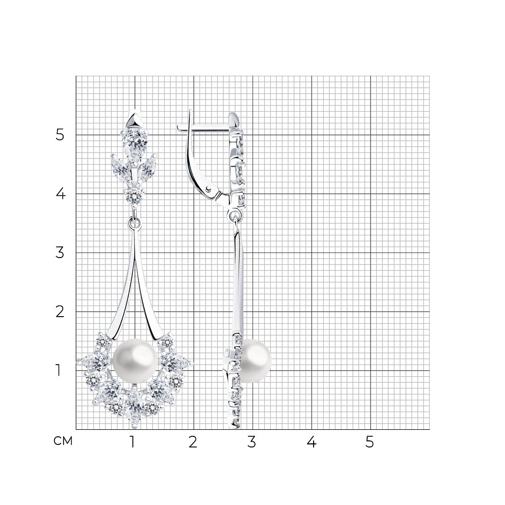 - 1х Серебряные серьги 925 пробы с жемчугом и фианитами
