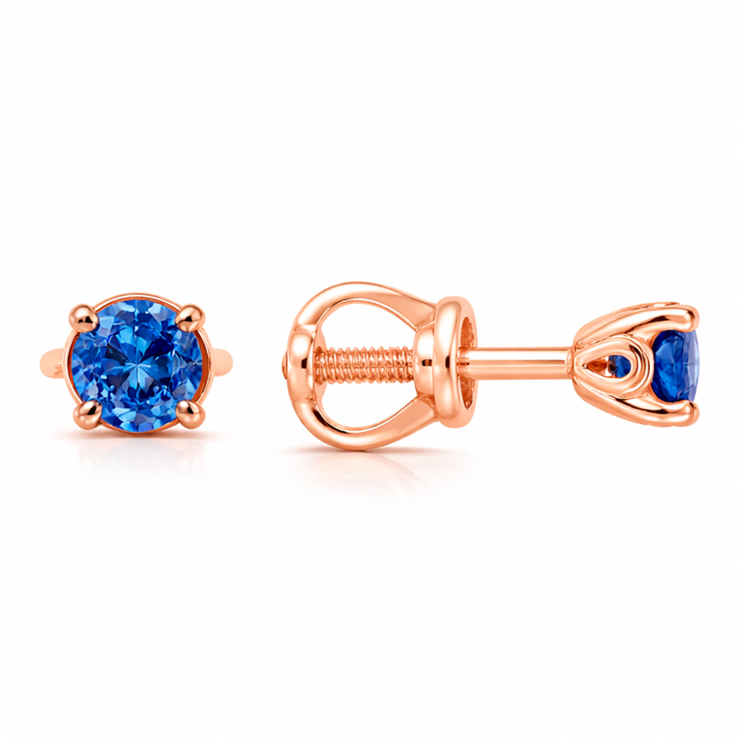 Замечательные серьги-гвоздики из красного золота 585 пробы, с вставками из сапфира - 0,396 ct., диаметр ≈ 3 мм.