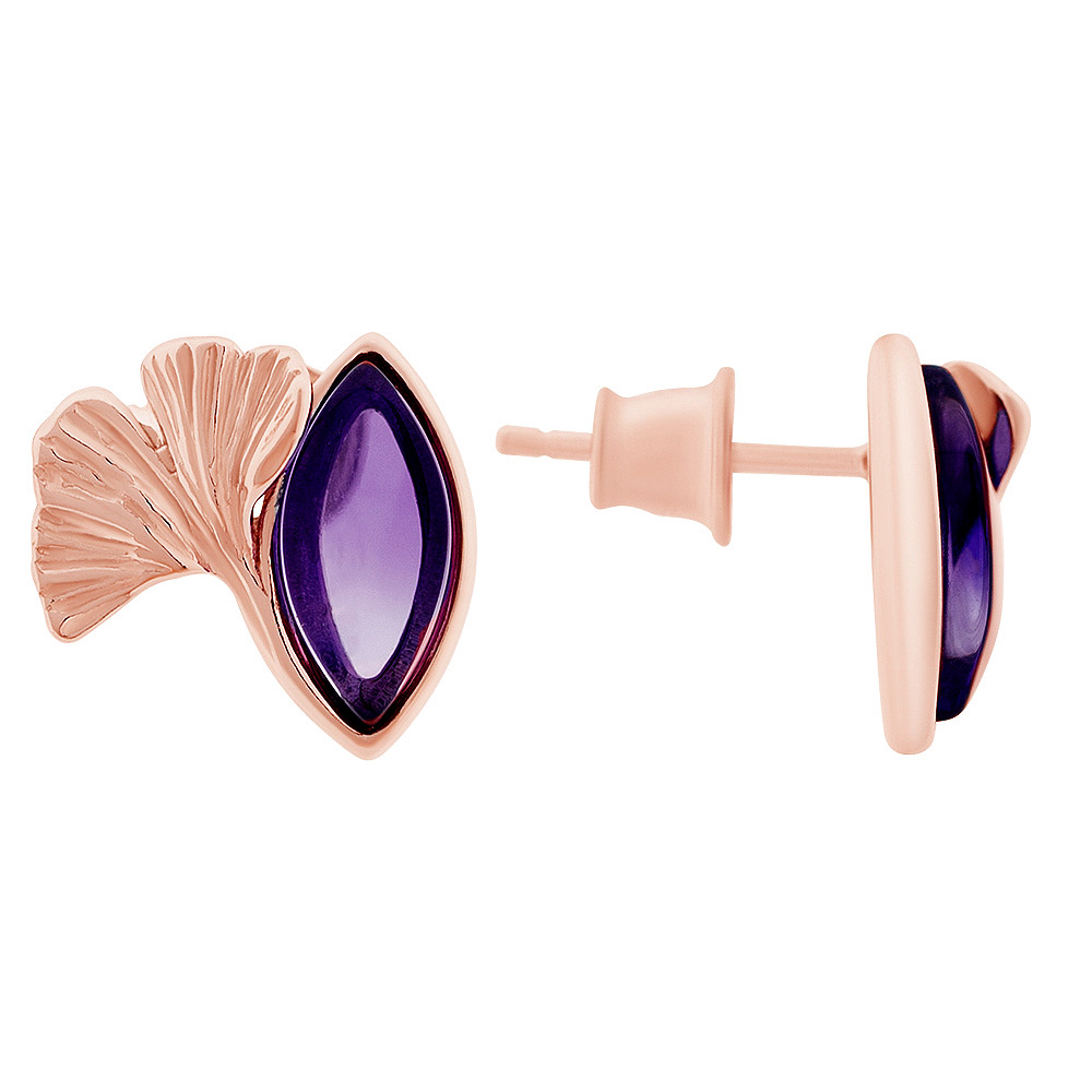 Серьги-гвоздики из серебра 925 пробы с аметистом, розовое позолоченное покрытие