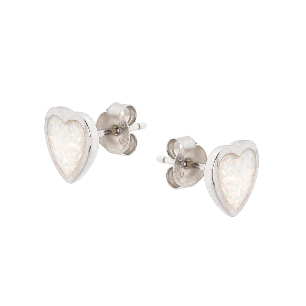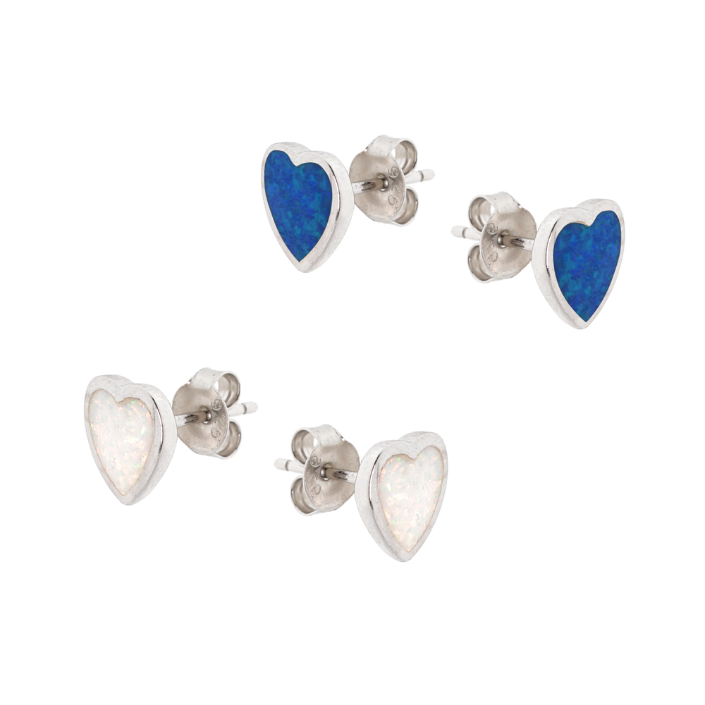 Серьги-гвоздики из серебра 925 пробы в форме сердца с белым или голубым опалом